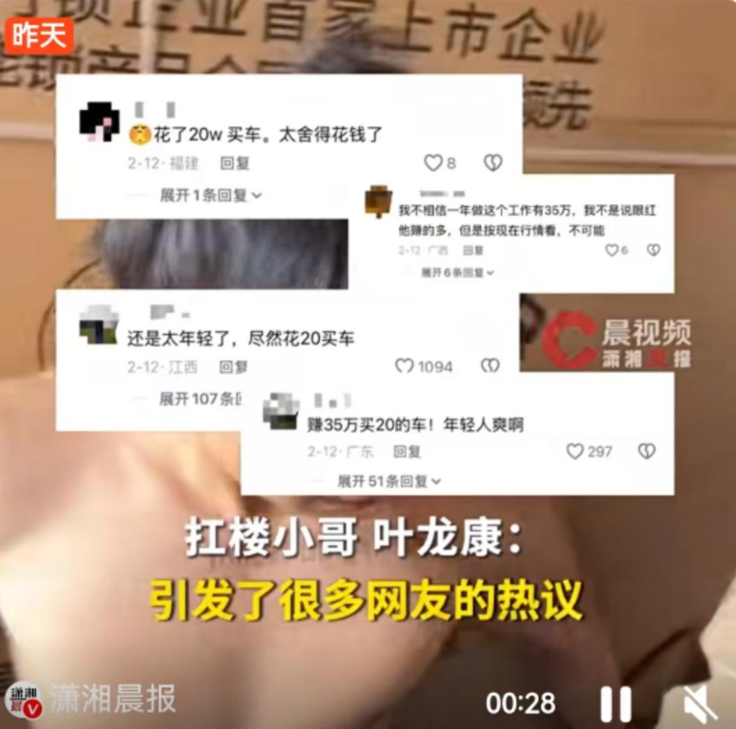 在这个“躺平”似乎成了年轻人口头禅的时代,一位来自湖南郴州的04年小伙,硬是用肩膀扛出了一条让无数人咋舌的“逆袭路”。 就在刚刚过去的春节档口,大年初二,当大多数人还沉浸在走亲访友的喜庆中时,被称为“扛楼小哥”的叶龙康,对着镜头回应了此前铺天盖地的质疑。他把那个充满争议的“年入35万”账单,摊开来给所有人看:这35万里面,有15万是实打实扛楼挣的血汗钱,剩下的20万,则是他做账号记录生活换来的互联网红利。 这一下,算是把之前那些说他“摆拍”、“夸大收入”的声音,实打实地怼了回去。 事情还得从头说起。叶龙康,2004年出生,标准的“00后”。在这个很多同龄人还在大学校园里享受青春,或者刚步入职场迷茫焦虑的年纪,他已经是个在长沙务工多年的“老师傅”了。他从事的行业有个通俗的名字——“扛楼”,也就是我们常说的建筑搬运工。水泥、沙子、砖块,甚至沉重的家具,全靠一副肩膀、一根扁担,一步一步挪上楼。 早在2025年2月,叶龙康开始尝试用短视频记录自己的扛楼日常。那时候,大概连他自己都没想过,这会成为改变命运的钥匙。短短半年时间,那个满是汗水与泥土的账号,硬是攒下了将近70万粉丝。大家爱看什么?爱看他青筋暴起的脖颈,爱看他一步一喘的真实,更爱看他在底层摸爬滚打却不服输的劲头。 随着名气越来越大,争议也随之而来。当“年入35万”的消息冲上热搜,网络上的评论区瞬间炸了锅。有人惊叹于这行的高收入,觉得“读书不如搬砖”;也有人对此嗤之以鼻,质疑他在作秀,甚至有人扒出他买车的细节,认为一个扛楼工人不可能有这么高消费,言语间充满了对他收入来源的恶意揣测。 面对这些声音,叶龙康没有选择沉默,也没有选择情绪化的回怼。大年初二这天,他给出了最直观的回应。 数据不会骗人,汗水也不会。那15万元的扛楼收入,是他在长沙各个楼盘、装修现场,用无数个来回和无数次弯腰换来的。这钱挣得烫手,每一分都浸透了汗水。而另外20万元的账号收益,则是互联网时代给予真诚者的回馈。在这个流量为王的社会,叶龙康抓住了机遇,他把自己最真实的一面展露在镜头前,观众买账,平台买单,这无可厚非。 至于那个被网友拿来“攻击”的买车行为,叶龙康的解释更是戳中了无数游子的软肋。他说,买车不是为了享受,而是为了回老家陪爷爷更方便。一句“陪爷爷”,道尽了这位04年大男孩心底最柔软的牵挂。在郴州老家,或许有一位老人正倚门眺望,孙子的车,就是老人眼中最踏实的期盼。这哪里是炫富,分明是尽孝。 我们常说,三百六十行,行行出状元。叶龙康的故事,其实给当下的年轻人上了生动的一课。 首先,在这个时代,单纯的体力劳动依然有价值,但若能叠加互联网思维,价值便能成倍放大。叶龙康没有因为自己是扛楼工就自轻自贱,也没有因为做账号火了就丢掉主业,他把“线上”和“线下”结合得恰到好处,这才是他年入35万的真正密码。 其次,网络上的键盘侠们,往往只看得到结果,却忽略了过程。看到35万,就质疑其合理性,看到买车,就怀疑其动机。这种恶意的揣测,往往忽略了当事人背后付出的巨大艰辛。扛楼的苦,没干过的人想象不到;做账号坚持更新的累,没试过的人也难以理解。 如今,这位年仅21岁的小伙子,已经用自己的肩膀扛起了家庭的重担,也扛起了自己的未来。无论他是那个在长沙街头汗流浃背的扛楼工,还是拥有70万粉丝的网络红人,他都在用自己的方式,认真地活着。 大年初二的这番回应,不仅澄清了事实,更让人看到了年轻一代务工者的担当。在这个喧嚣的网络世界里,或许我们更应该多一份耐心,去倾听像叶龙康这样普通奋斗者的声音。毕竟,无论那35万是怎么构成的,它都属于一个努力生活的人应得的回报 以上内容仅供参考和借鉴