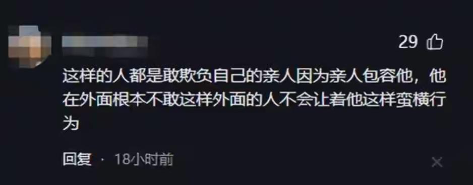 你说的太对了,这样的人,在家里横,家里人包容他,在外老实温顺的给个狗,连大话就不敢说