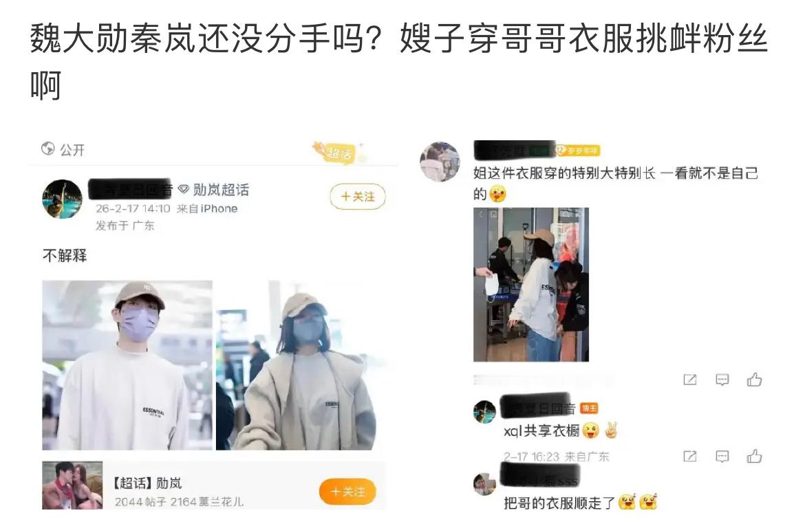 昨天秦岚机场穿了件宽大的卫衣,之前魏大勋也穿过一件同款,cp粉认证这件衣服是魏大勋的。