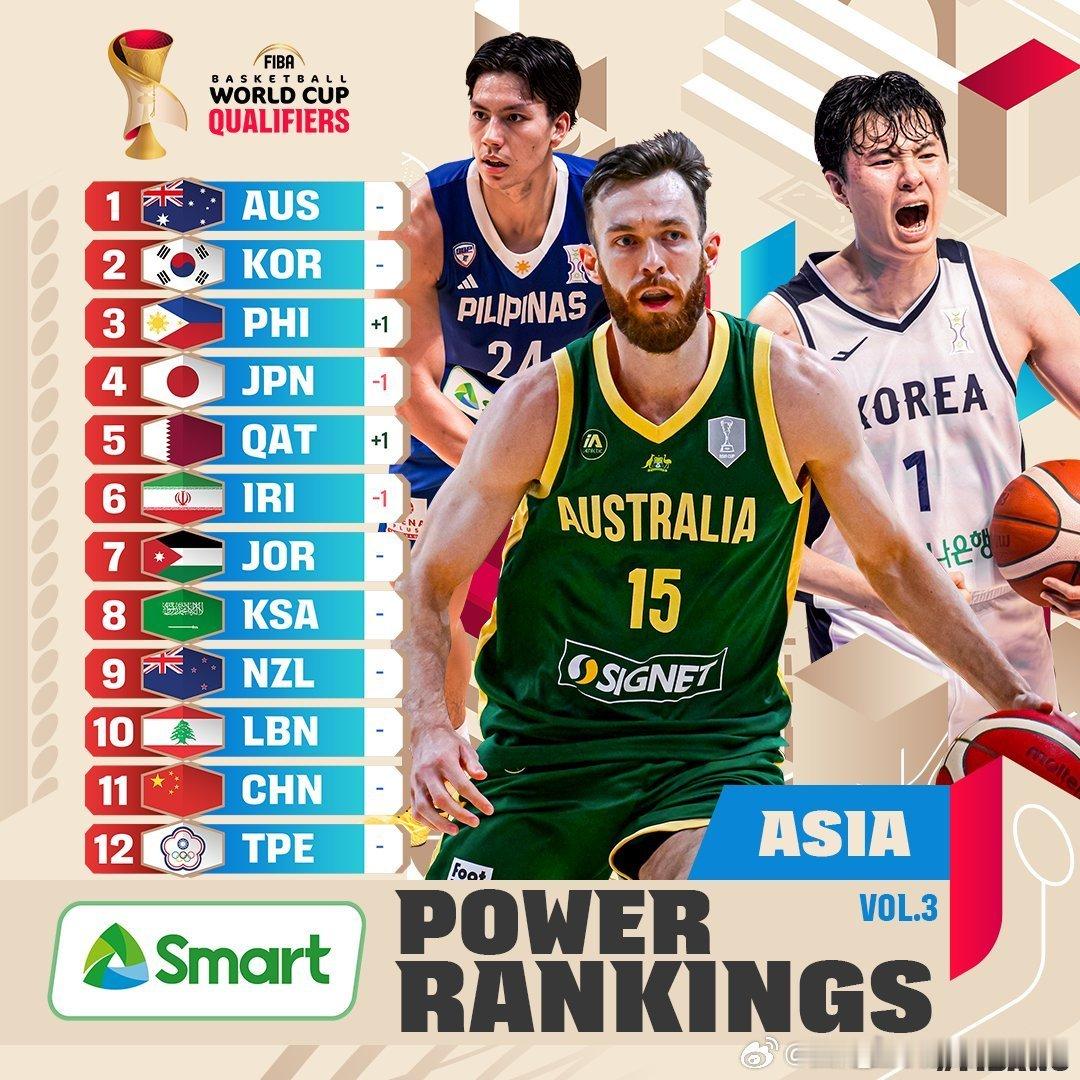FIBA发布男篮世预赛亚洲区第三期实力排行榜,中国男篮位列第11位,仅高于中国台湾男篮,即将和中国男篮交手的日本男篮则位列第四。知耻近乎勇,中国男篮奋起雪耻吧,客场打出气势来!