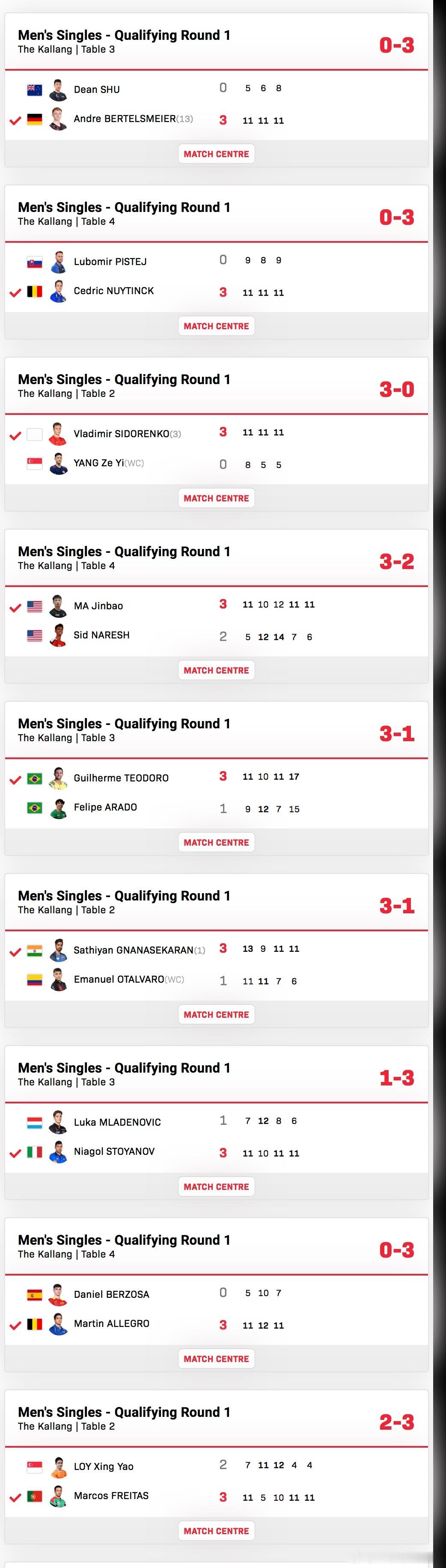 2026新加坡大满贯Q1弗雷塔斯3-2黎行耀阿莱格罗3-0贝尔佐萨斯托亚诺夫3-1卢卡加纳纳塞卡然3-1奥塔瓦罗特欧多罗3-1阿拉多马金宝3-2希德西多连科3-0杨泽一纽丁克3-0皮斯特耶贝塔施迈尔3-0舒迪恩