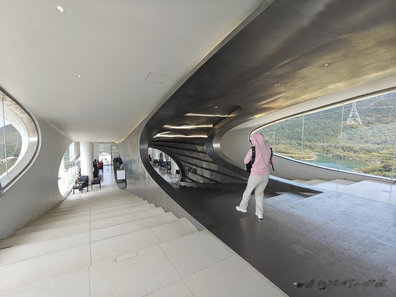 发现一个很舒服的地方,云海公园。 人不多,绿水青山,可以登高望远,大年初三走一遭,马年发发发,今天盐田云海公园这一趟还是很值得去的。 到云海公园,只能开车到茶溪谷停车场,然后坐上大巴公交车上山,上山的路只能让公交车上去,私家车是不能上去的。 公交车上山的时候,还能看到有些人选择徒步上山,也有骑自行车上山的,公交车有6个站,就能到山顶。 到山顶就是云海公园了,上面只有一个云海公园,刚开始以为公园会很大,其实不大,就有一栋很漂亮的建筑,很多明星之前在这里拍过广告。 有梁朝伟,檀健次等等明星来云海公园拍过广告,搜了一下它是2023年5月份才开始试营业的,以前还真不知道马峦山上还有云海公园。 最近就是因为云海公园的网红图书馆,也就是这个建筑出名了,才来走一遭。上面有很漂亮,很清的湖水,能上到建筑的顶楼,一眼望去,盐田尽收眼底。 还有镂空的玻璃桥,大家都选择过去拍照,能看到大海,港口,大山,还有盐田的高楼大厦,微风一吹,甚是舒服。 这里面还有一些书籍,可以看,就是有点少了,再多一点就好了。山顶的风景确实漂亮,之前茶溪谷,大峡谷都去过,就是这个云海公园还是第一次来。[呲牙]记录我的2026