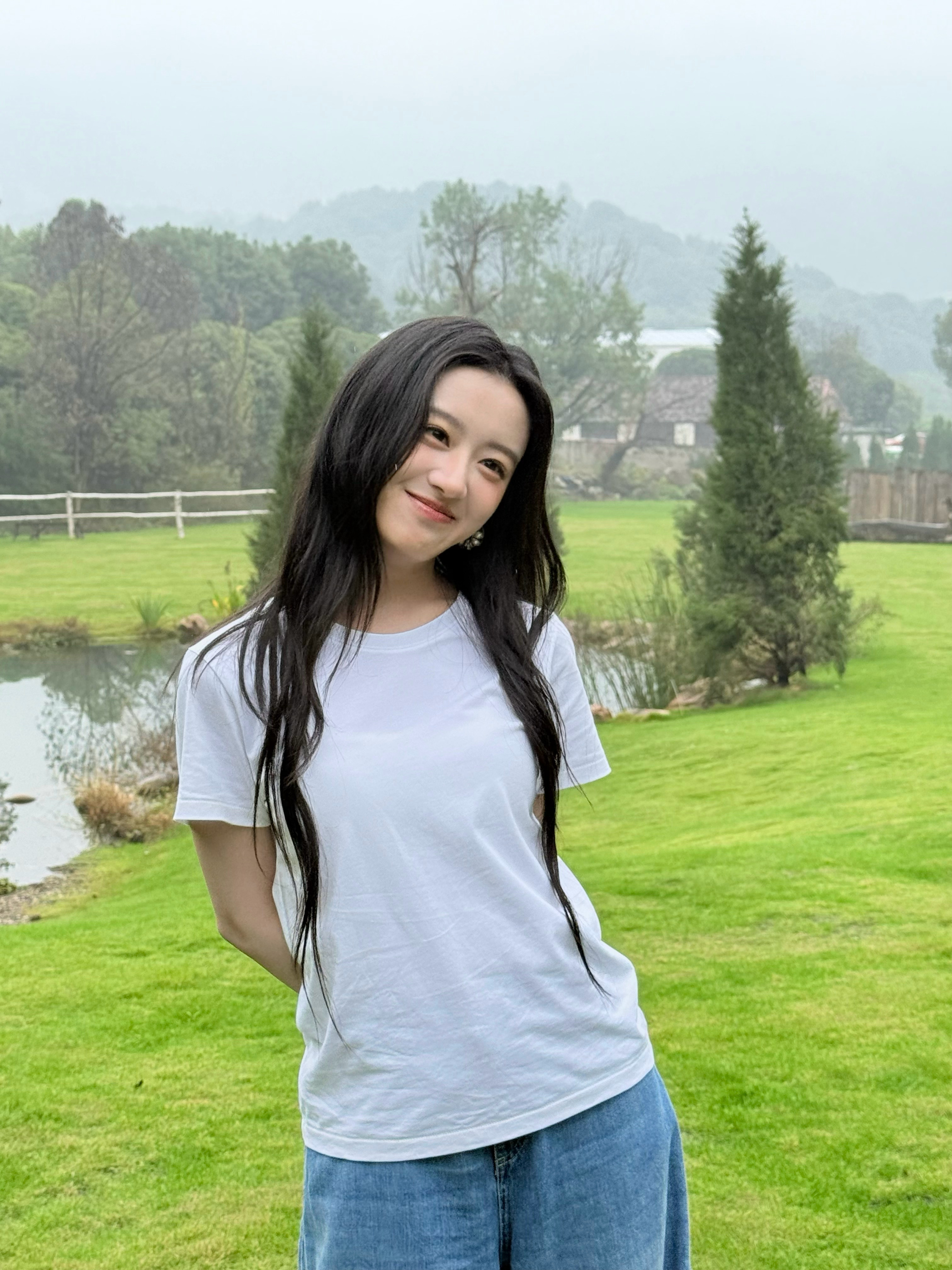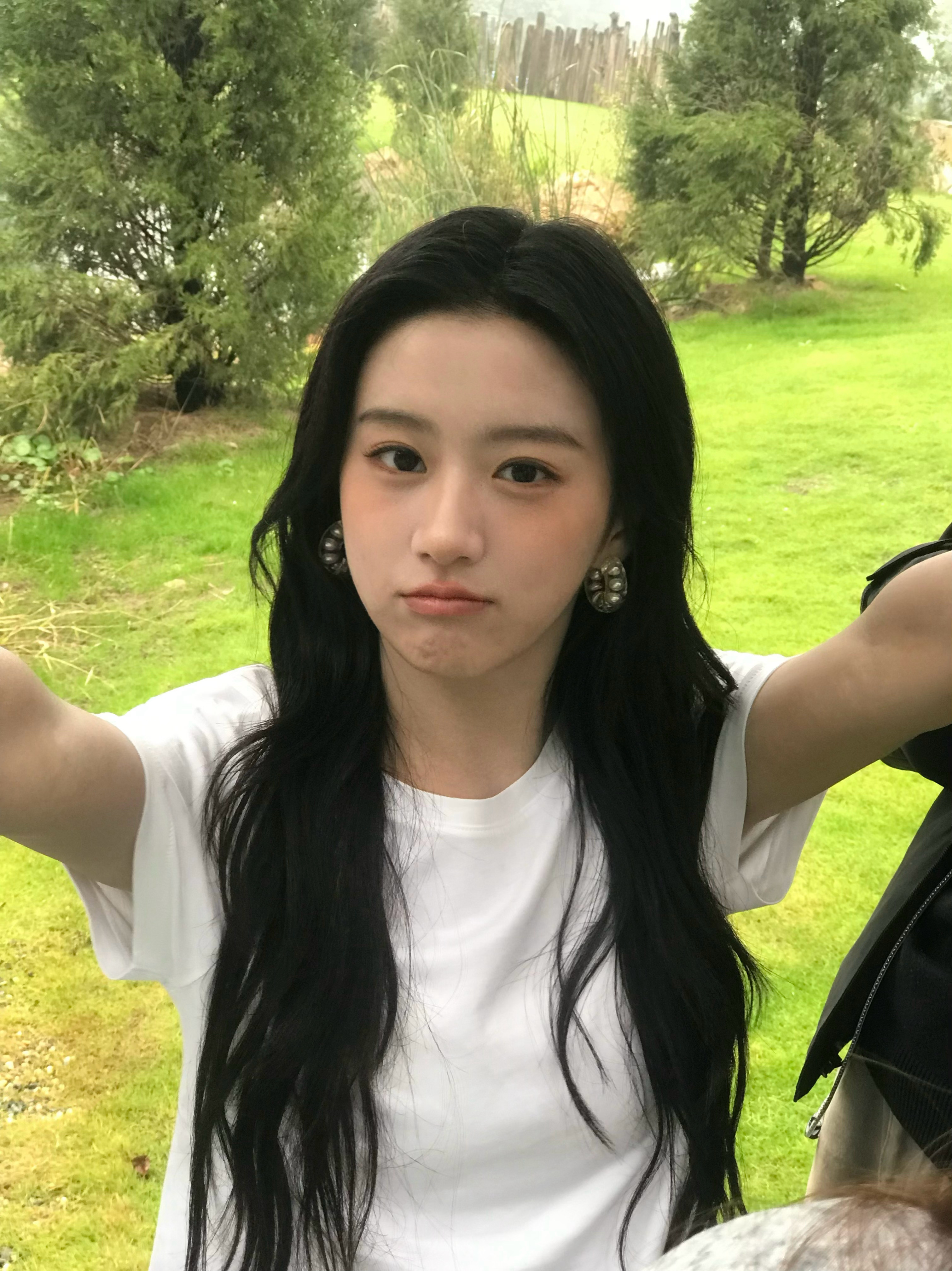 张天爱跟素人合影,胯真的好宽,大宅院似的