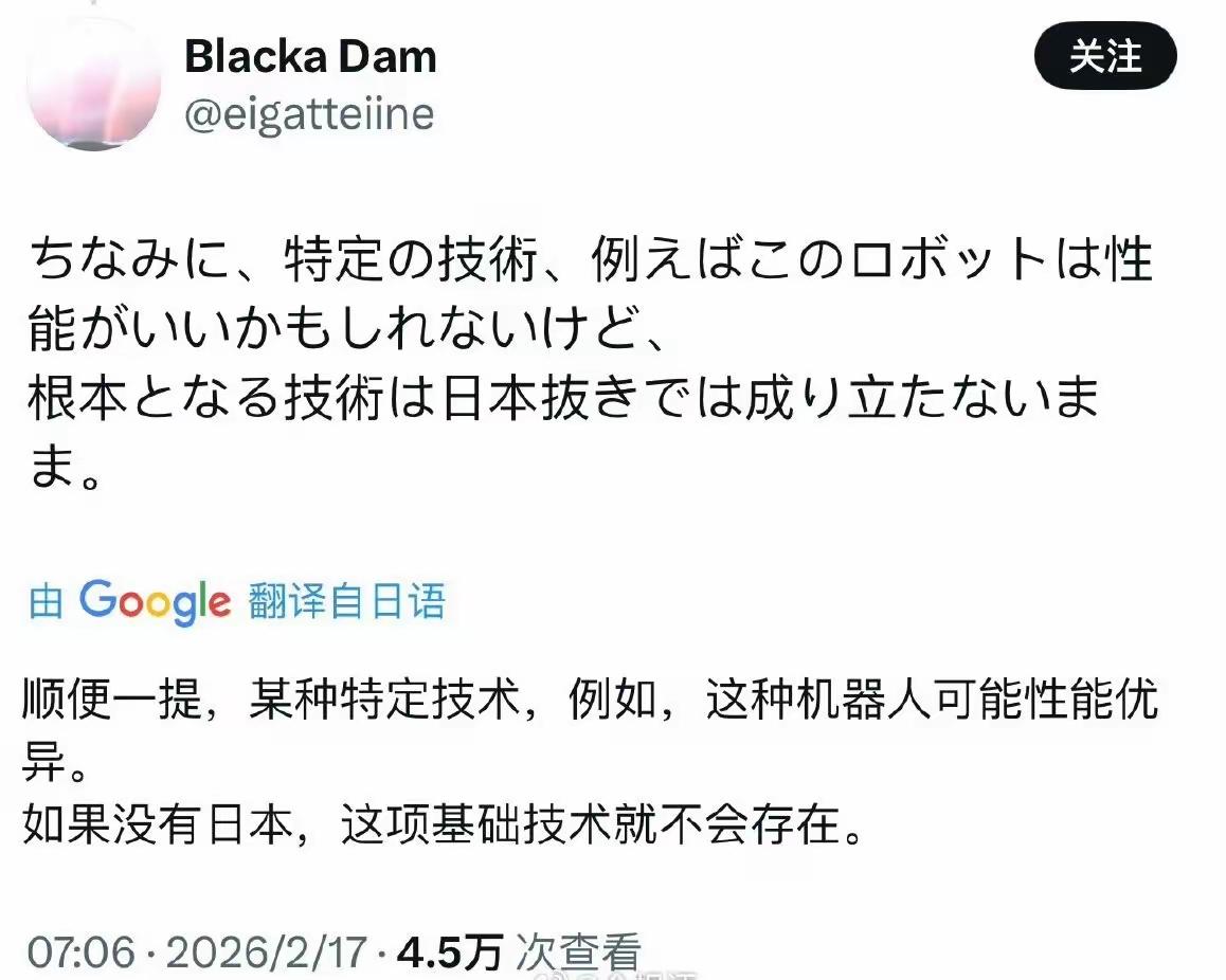 日本人说:中国的春晚机器人是盗取了日本的技术! 日本现在敢不敢把以前三天两头出来作秀的人形机器人,放出来走两步? 说白了,日本就没有过这个水平的技术,还活在自我虚构的世界里。 2026年总台春晚上亮相的人形机器人,凭借空翻、武术、协同编队等高难度表演圈粉无数,这些机器人的核心零部件、运动控制算法、整机协同系统,均由国内科研团队和企业自主研发,拥有完全独立的知识产权,整个研发过程没有使用任何来自日本的核心技术。这些机器人能完成复杂且精准的动作,是国内多年技术攻关、场景测试的成果,绝非简单模仿就能实现。 日本早年确实在人形机器人领域有过早期探索,本田推出的ASIMO机器人曾引发关注,但该项目早在2018年就正式终止研发,此后日本再也没有推出过能公开稳定表演、完成高难度动作的人形机器人产品。日本的人形机器人研发早已陷入停滞,核心问题是技术路线瓶颈无法突破,商业化落地困难,最终只能放弃相关研发方向,转向工业机械臂等相对成熟的领域。 日本国内至今没有能登上大型晚会、完成集群表演的人形机器人产品,更没有实现春晚机器人这般灵活的运动能力和协同控制水平。拿不出同水平的实物成果,却对中国的技术成果无端指责,这种说法既没有技术依据,也经不起行业内的专业考证,本质是毫无根据的抹黑。 近些年中国人形机器人产业实现了跨越式发展,从伺服电机、减速器等核心零部件,到整机算法、场景应用,都完成了自主化突破,多款机器人已经进入工业、服务、特种作业等实际场景落地应用。春晚的展示只是国内机器人技术的一次公开呈现,背后是完整的产业链和持续的科研投入,这是有目共睹的事实,不是几句不实言论就能抹杀的。 这种抹黑言论的背后,是不愿正视中国科技快速发展的失衡心态,抱着过时的技术优越感,回避自身研发停滞的现实。科技发展的核心是脚踏实地的研发和持续的投入,靠造谣抹黑他国成果,根本无法提升自身的技术水平。 真正的科技实力,要靠实物产品和实际应用来证明,而不是靠空口指责。中国机器人技术的进步,是无数科研人员努力的结果,也向世界证明了自主创新的实力。一味活在过去的光环里,很难在科技竞争中跟上节奏。 各位读者你们怎么看?欢迎在评论区讨论。