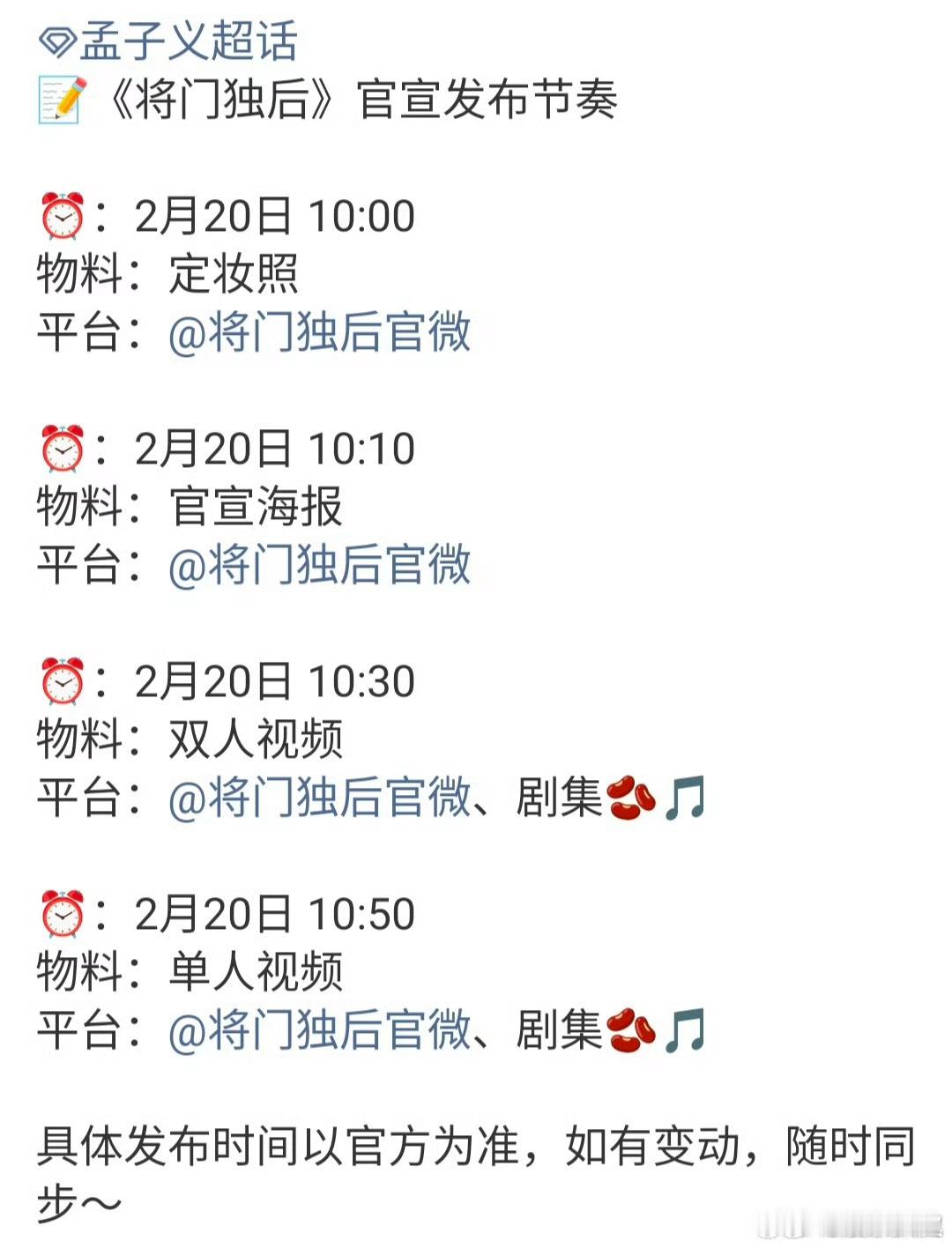 王鹤棣孟子义 将门独后王鹤棣孟子义《将门毒后》来了,双方对接号都发将门独后官宣节