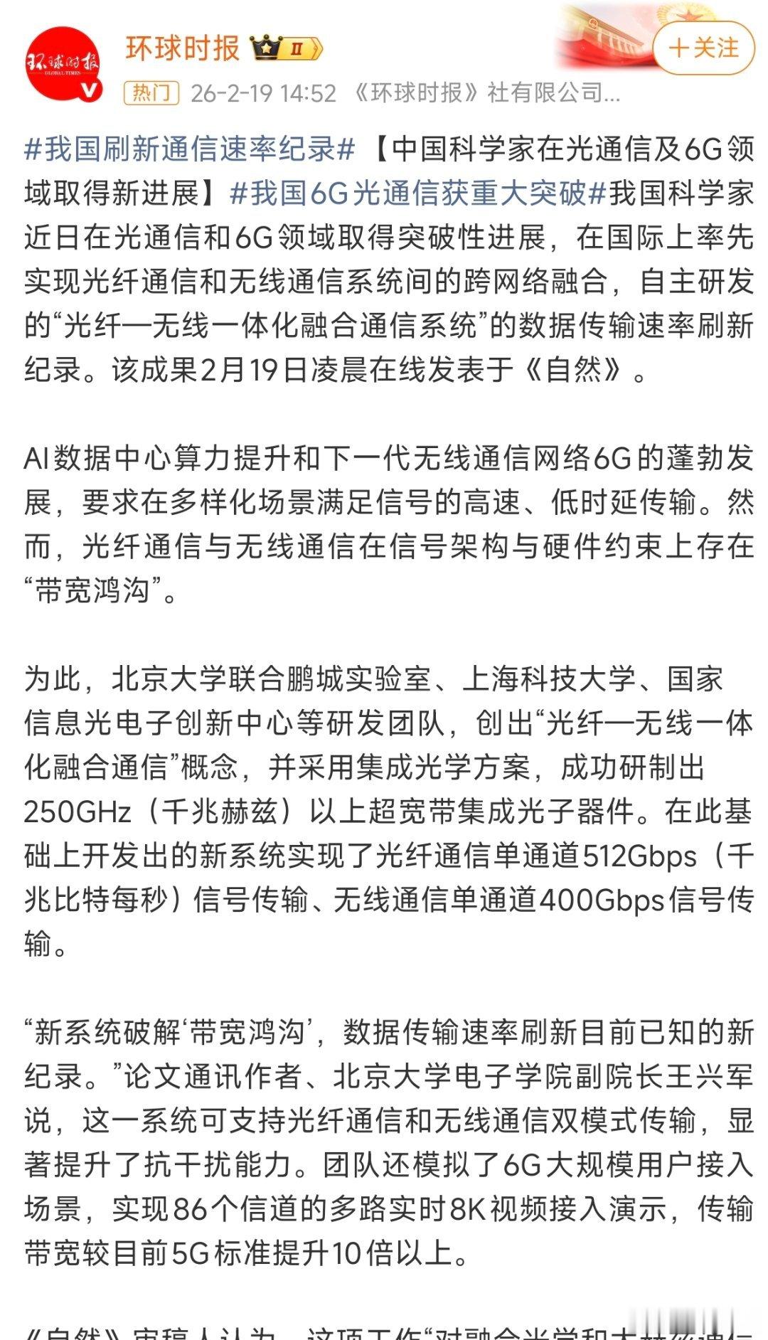 光通信6G突破性进展