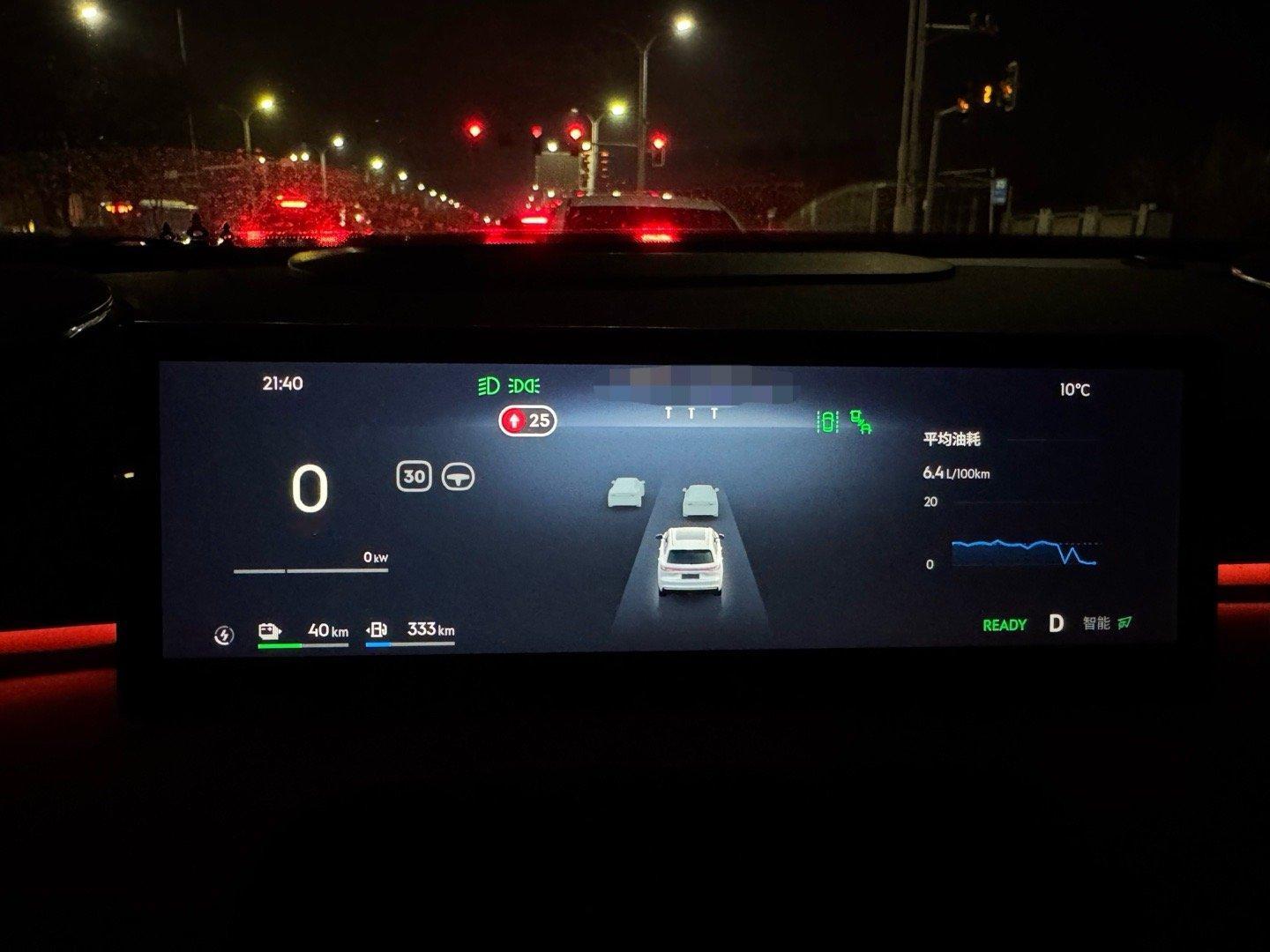 剩余纯电续航28km的亏电状态上的高速,车内三人无行李轻载,胎压2.7左右,10度左右的环境气温,车比较多所以速度大约维持在120-130附近,没车的情况下就顶着20%跑,驾驶模式选择性能模式。大动力请求时超车动力性不说深不见底吧,但干净利落地砍瓜切菜是足够了。全程跑完,到下高速时剩余纯电续航涨到40km,表显约2kw的平均发电功率,平均油耗约6.5L(没去加油,估计挤掉快乐表的水分实际油耗会在7.5-8左右)。