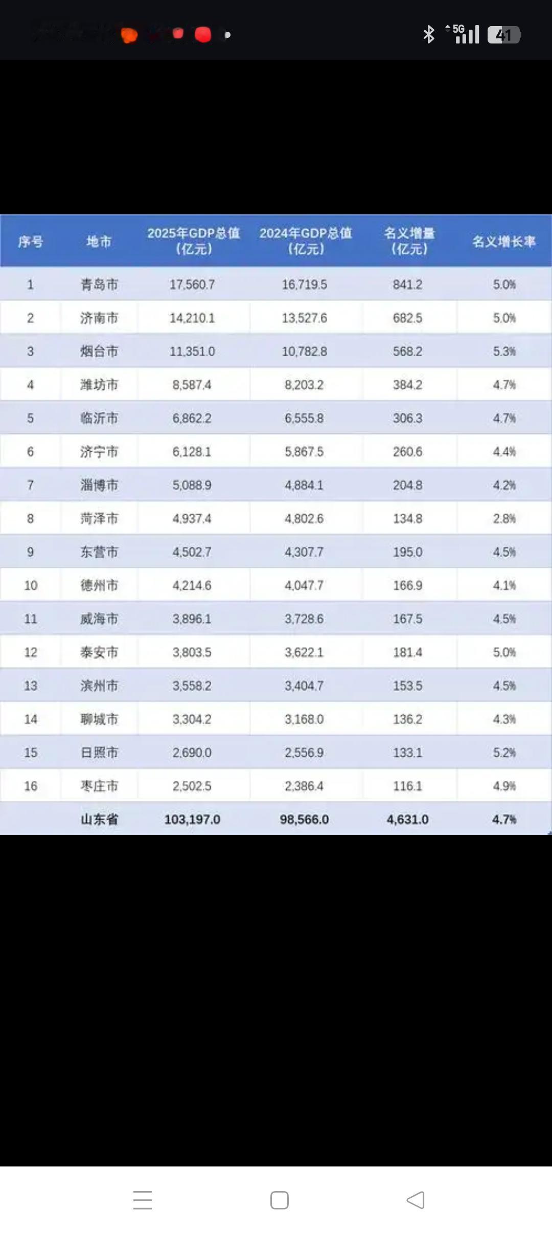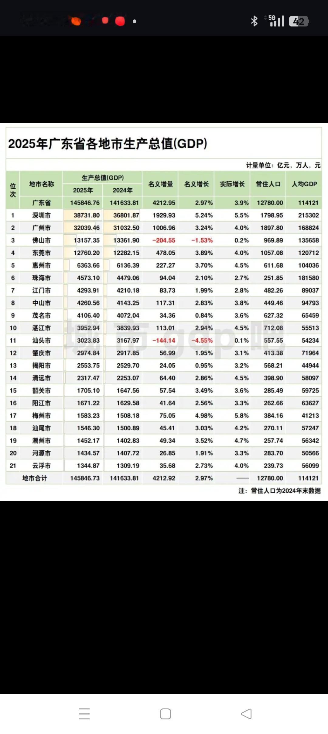 四大强省谁的后劲更足,发展最均衡? 广东、江苏、山东、浙江是我国的GDP四大强省,那么,这四大强省中,谁的发展后劲更足呢? 从下列两个维度分析,可得到相应的答案。 一是看增长趋势,广东2025年GDP的名义增长率为2.97%,而江苏则为4.14%,显然,江苏在增速方面要远远高于广东,两者在GDP上的差距也在持续的缩小,按此趋势下去,再过2、3年的时间,江苏就会赶上并超过广东,坐上GDP的头把交椅;浙江、山东的名义增长率分别为4.9%和4.7%,但与江苏的差距依然较大,要赶上江苏,基本上没有可能。 二是看2、3年内GDP过万亿的城市数量,目前,四省过万亿城市数量分别是:江苏5个,广东4个,浙江3个,山东3个。而今后2、3年内新迈入万亿俱乐部行列的城市(目前GDP7000亿以上),江苏是4个,浙江是4个,山东是1个,广东则无,由此看来,2、3年内,江苏GDP过亿的城市为9个,占全省13个城市的69%,浙江则为7个,占全省11个城市的63%,山东则为4个,占全省16个城市的25%,广东则停留在4个城市,占全省21个城市的19%。 综上所述,江苏的发展后劲是四大强省中最强的省份,同时也是发展最均衡的省份;浙江虽然目前总量排名最后,但后续发展可期,均衡发也做得不错;而广东GDP主要靠深圳、广州两市,GDP过万亿的仅4个城市,其它城市中,目前最高的GDP仅有惠州一市,也仅为6363亿,余下的则均不足5000亿,离万亿目标还有5000亿以上的距离,而江苏目前最差的市连云港的GDP也接近5000亿了。同时在这四大强省之中,也可以说在全国范围以内,江苏是唯一没有四线城市的省份;而广东的四线城市有7座,是四大强省中四线城市最多的省份。因此,可以说是四大强省中,发展最不平衡的省份是广东,广东,加油!