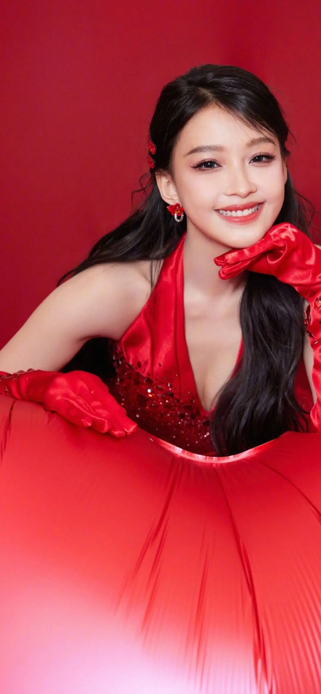 李沁 新年营业,红丝绒西装又美又利落!