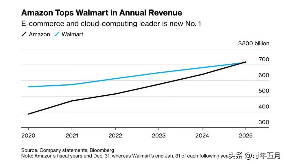 亚马逊超越沃尔玛,成为全球营收额最大的公司。 沃尔玛曾连续十多年蝉联营收最高的公司,周四公布截至1月31日的12个月销售额为7132亿美元。亚马逊的财政年度于12月结束,该公司本月早些时候公布了2025年的销售额为7170亿美元。