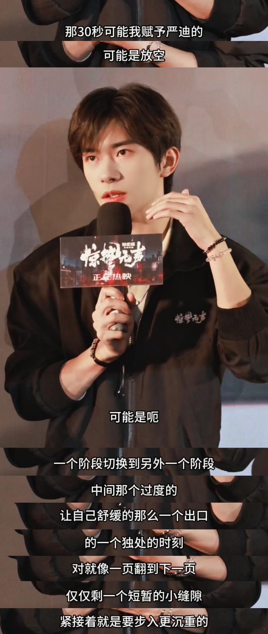 易烊千玺回应严迪30秒文学终于等到官方解读!易烊千玺在成都分享,严迪的30秒沉默是复杂情感的过渡喘息,不是放空,是藏着所有身不由己的片刻放松,越想越觉得角色立体