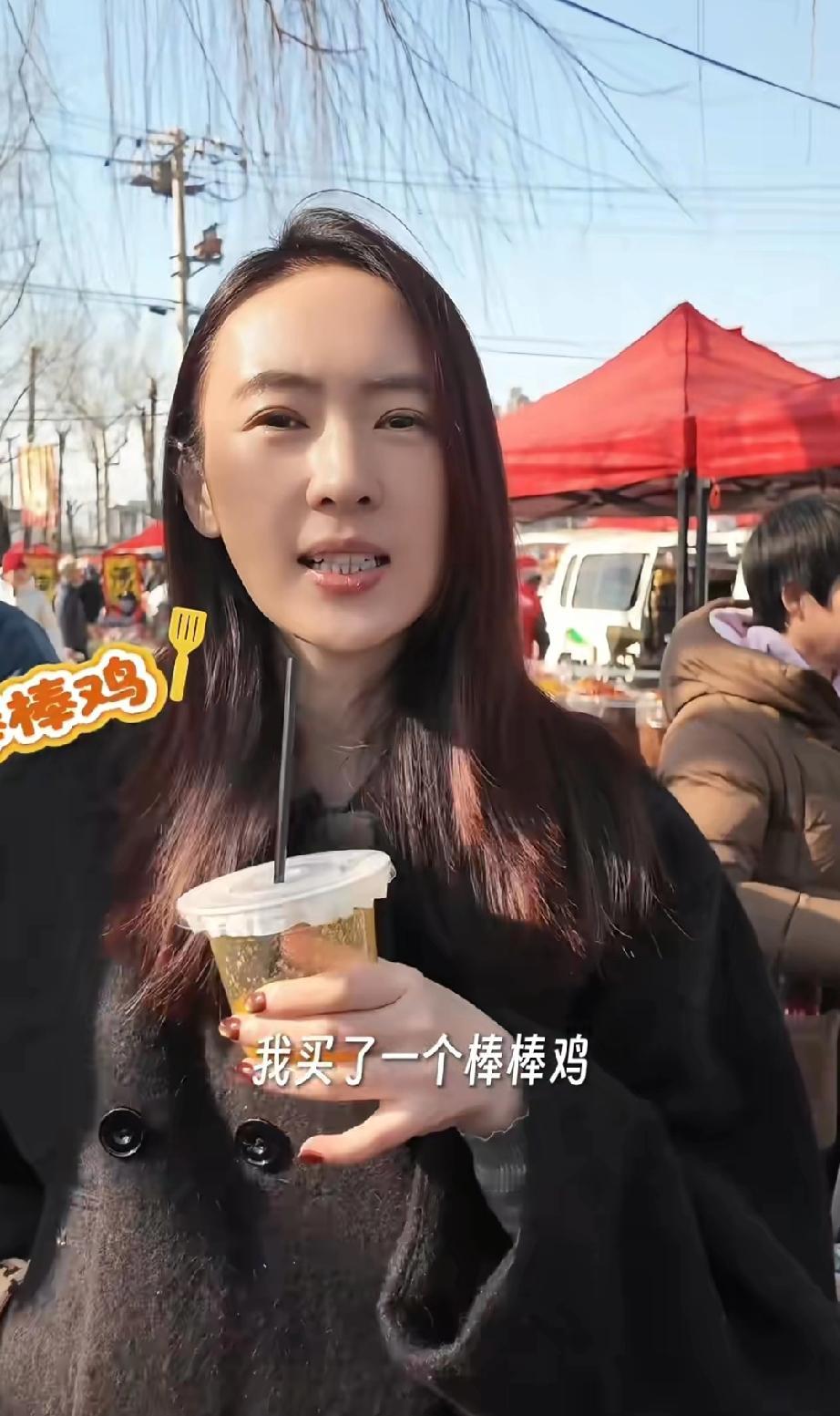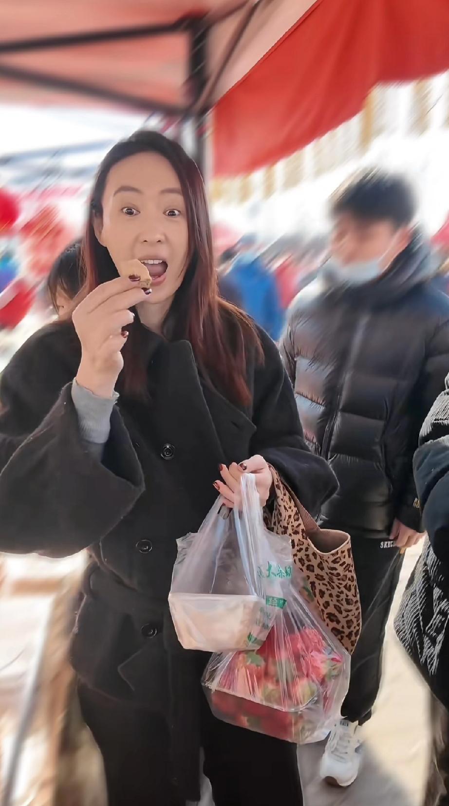 童瑶在北京过年赶大集,新年去了北京沙河大集逛了,她私下基本都不化妆,出镜大方素颜,被路人说“长得像明星童瑶”,她也应和着说“是吧,都说我像”,性格还挺搞笑。 童瑶这次出镜看着胖了不少,双下巴都出来了,不少网友都感觉她有些显孕相了,视频里穿着件毛呢大衣,腰身确实胖了,肚子也凸起,她和圈外老公王冉结婚六年,一直没要孩子,现在她40岁了,再不要就真的晚了,所以现在怀孕也是有可能的。 童瑶现在也不忌口,一边逛一边吃,完全没有其他女星要身材管理少吃的习惯,她前段时间还和老公王冉去了老家云南玩,夫妻俩感情很稳定呀。