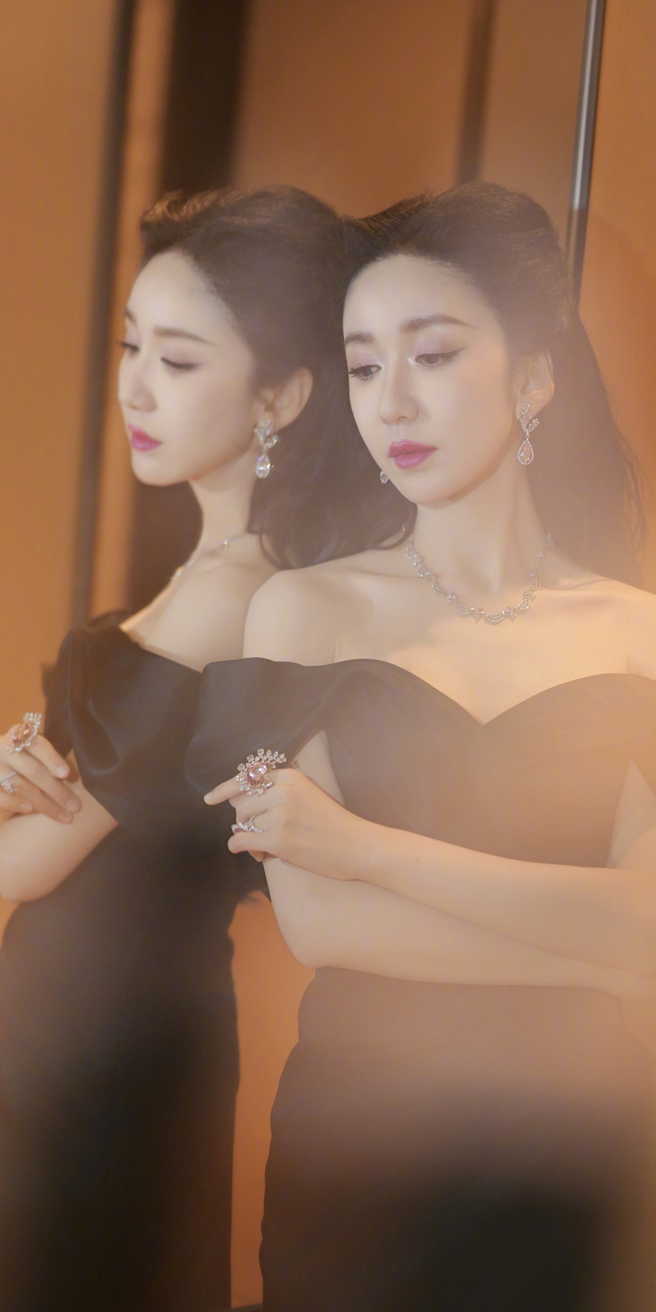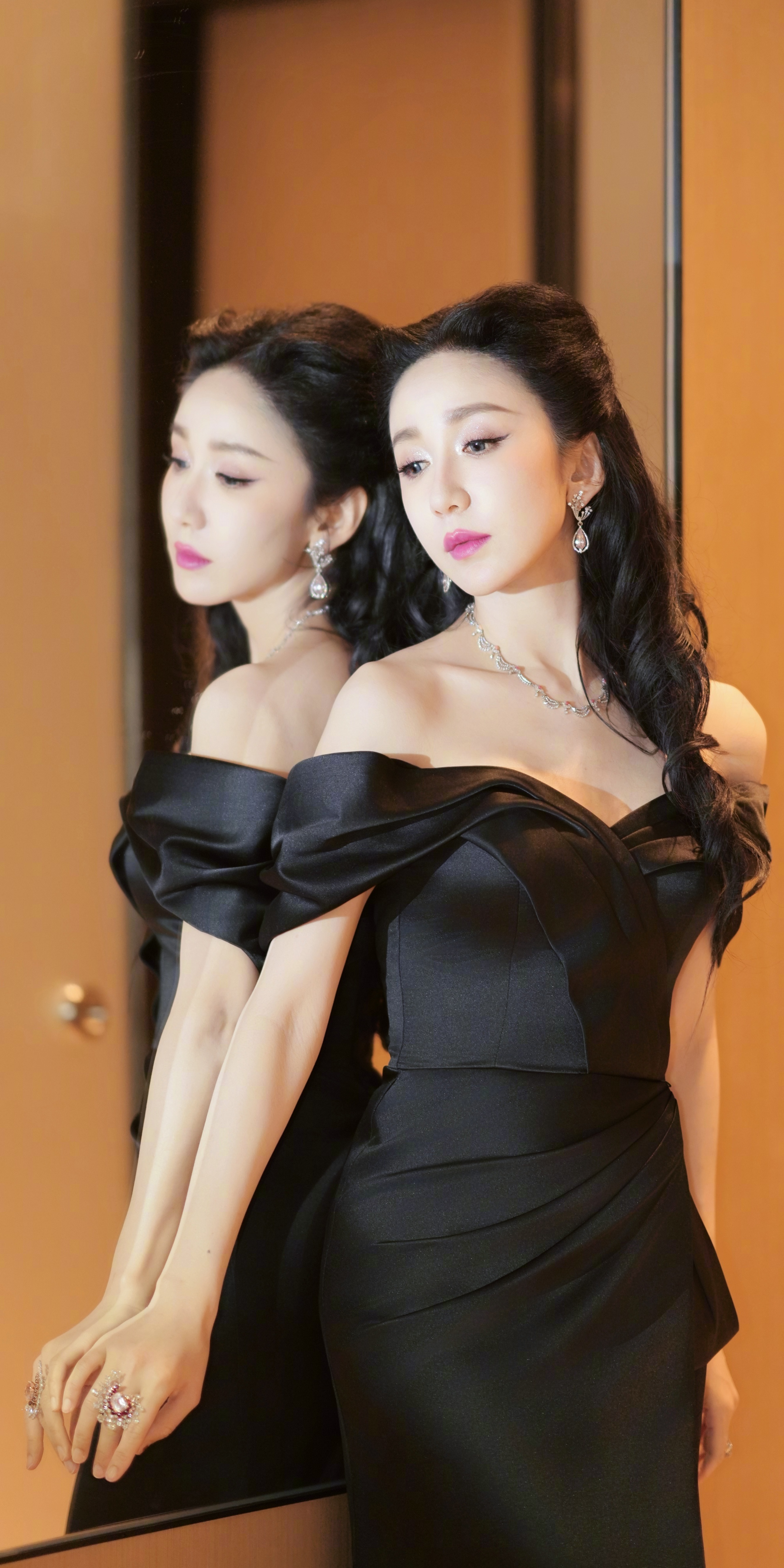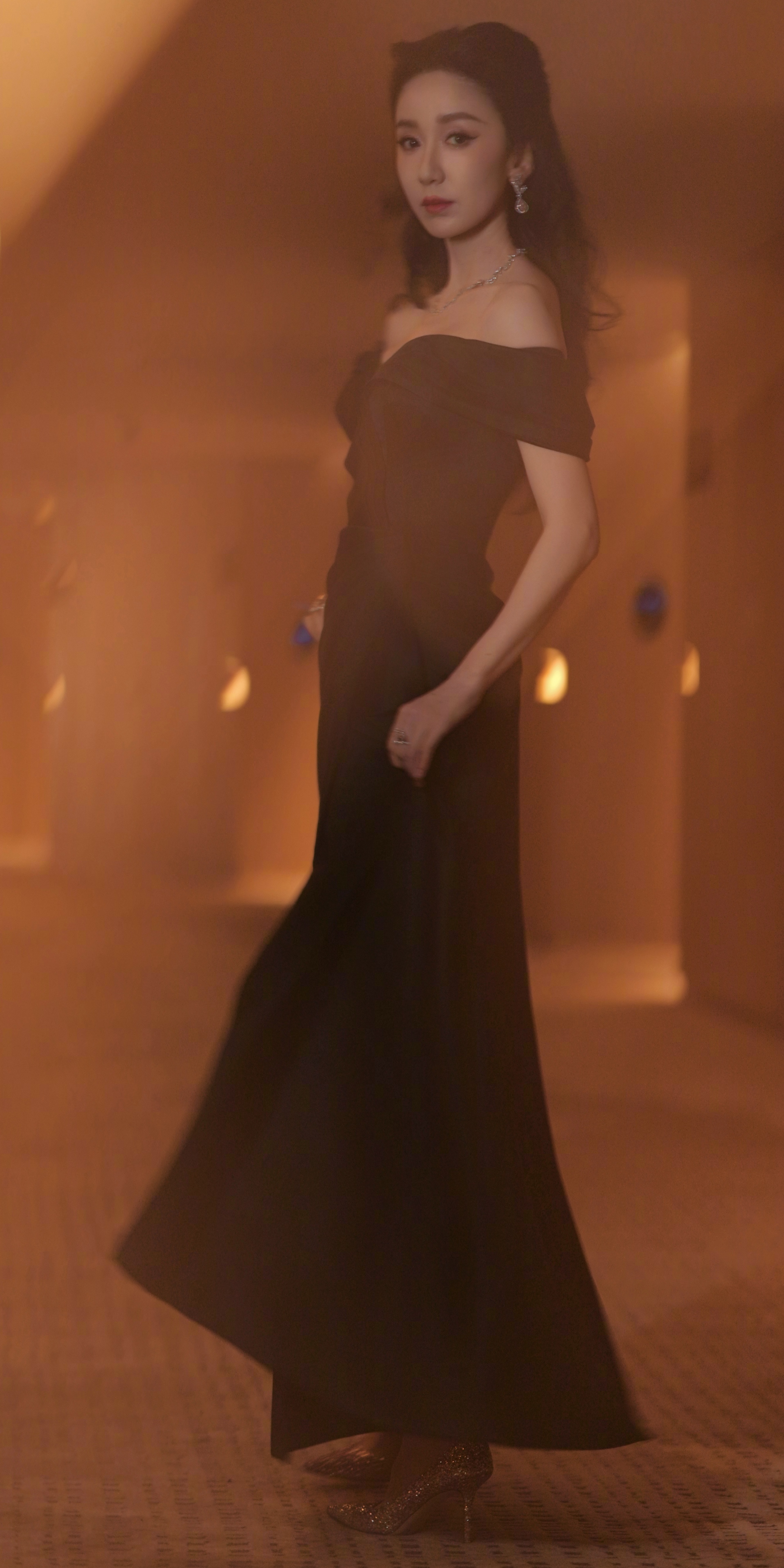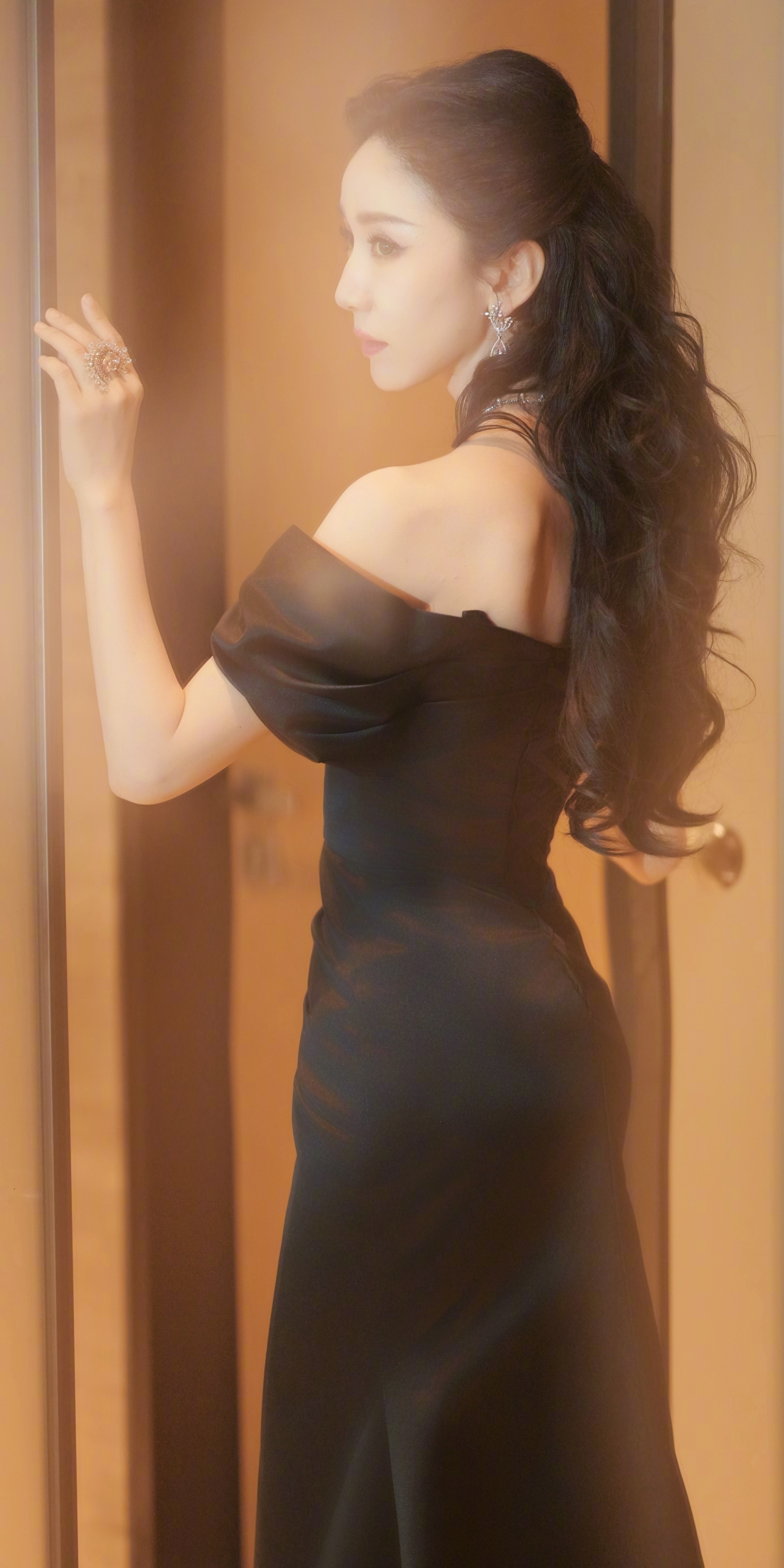 娄艺潇写真壁纸:黑色晚礼服婀娜姿态。娄艺潇