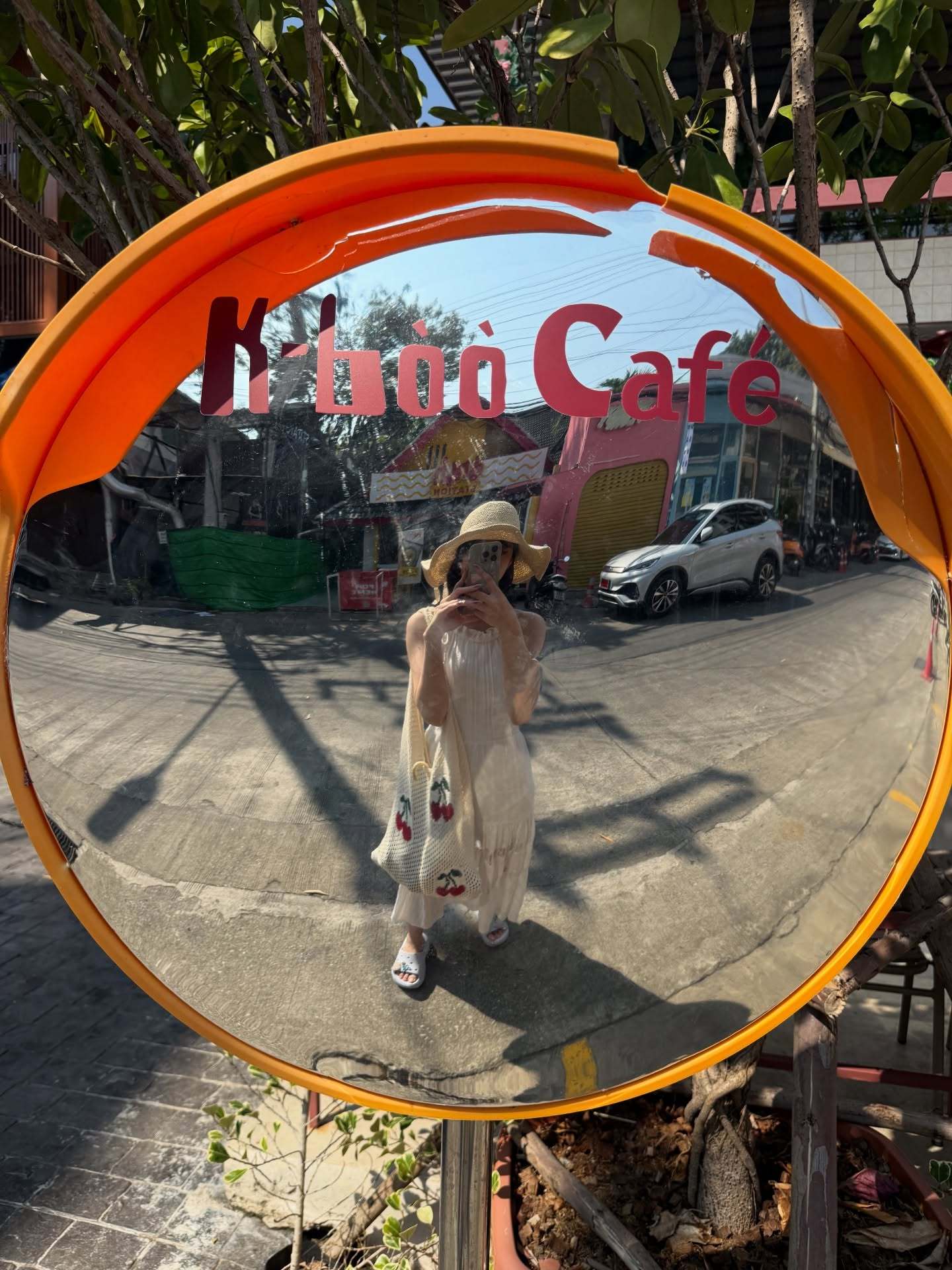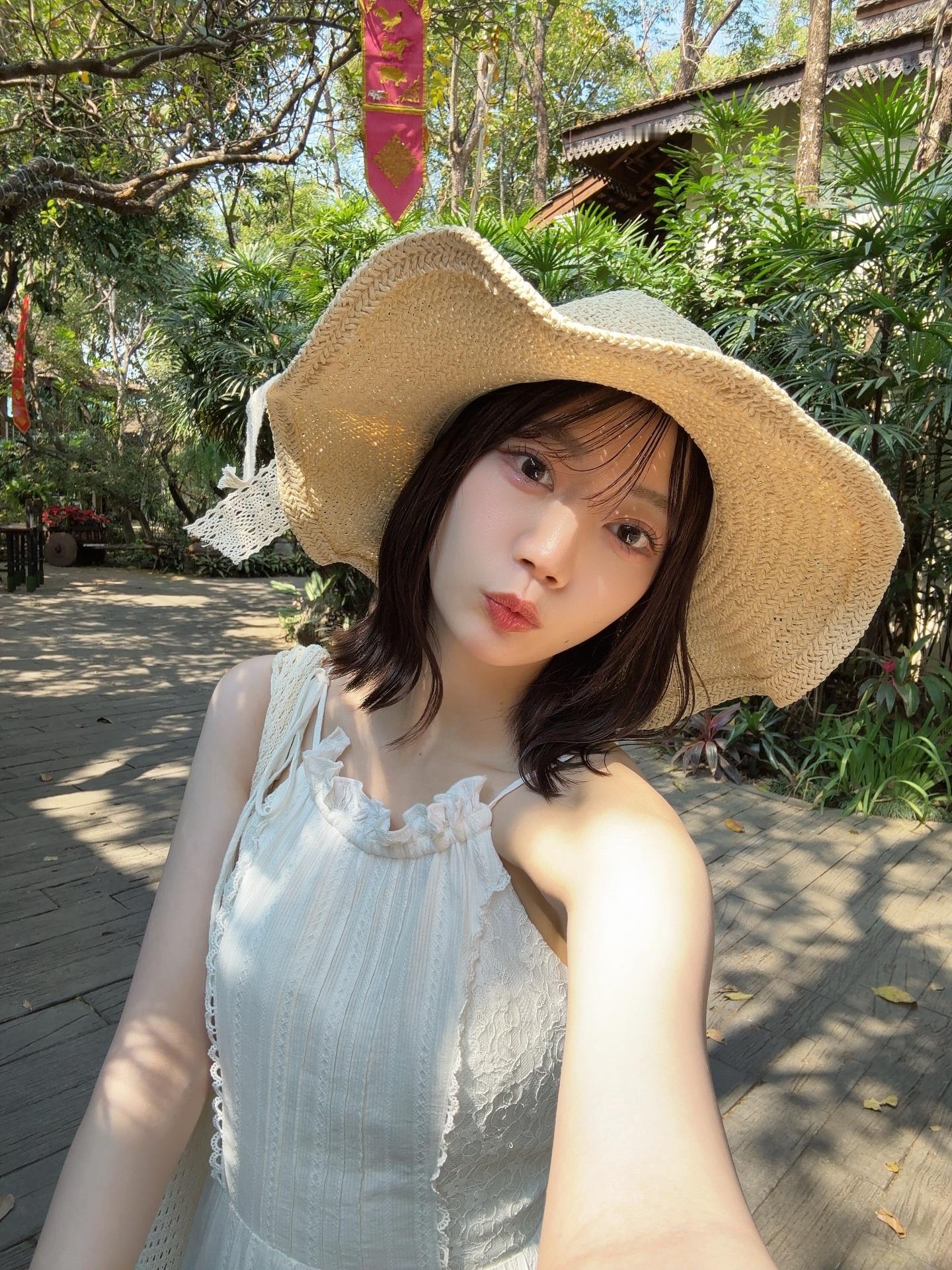 高本彩花「初ソロ海外 チェンマイ編🇹🇭ターペー門の近くのお店で買った麦わら帽子とさくらんぼのバッグ👒🍒お気に入りです!ニマンはおしゃれな建物や場所か多かったです!街がカラフルで可愛かった〜🥰changmai一人旅」ayacherigram