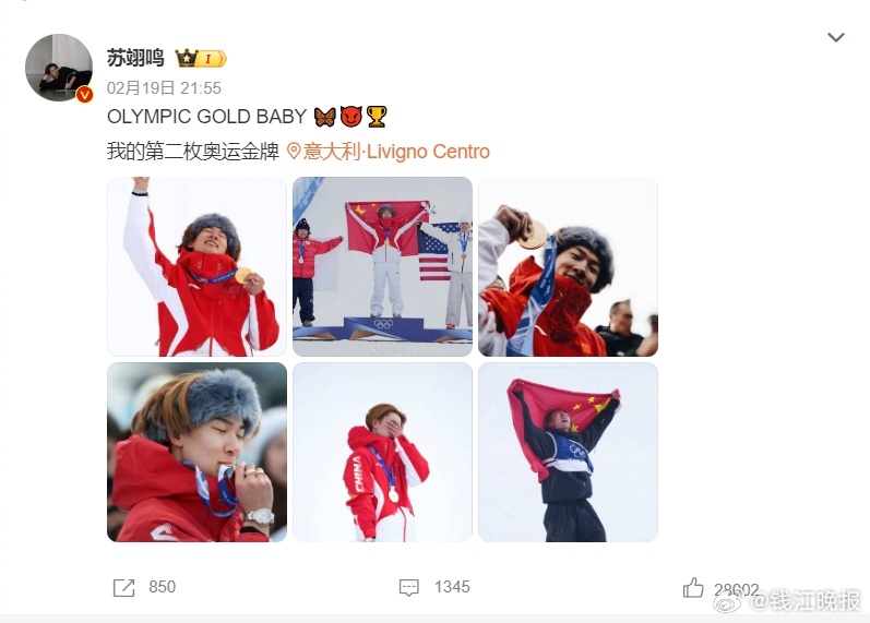 【苏翊鸣发文:我的第二枚奥运金牌】#苏翊鸣的第二枚奥运金牌#2月19日晚,发博