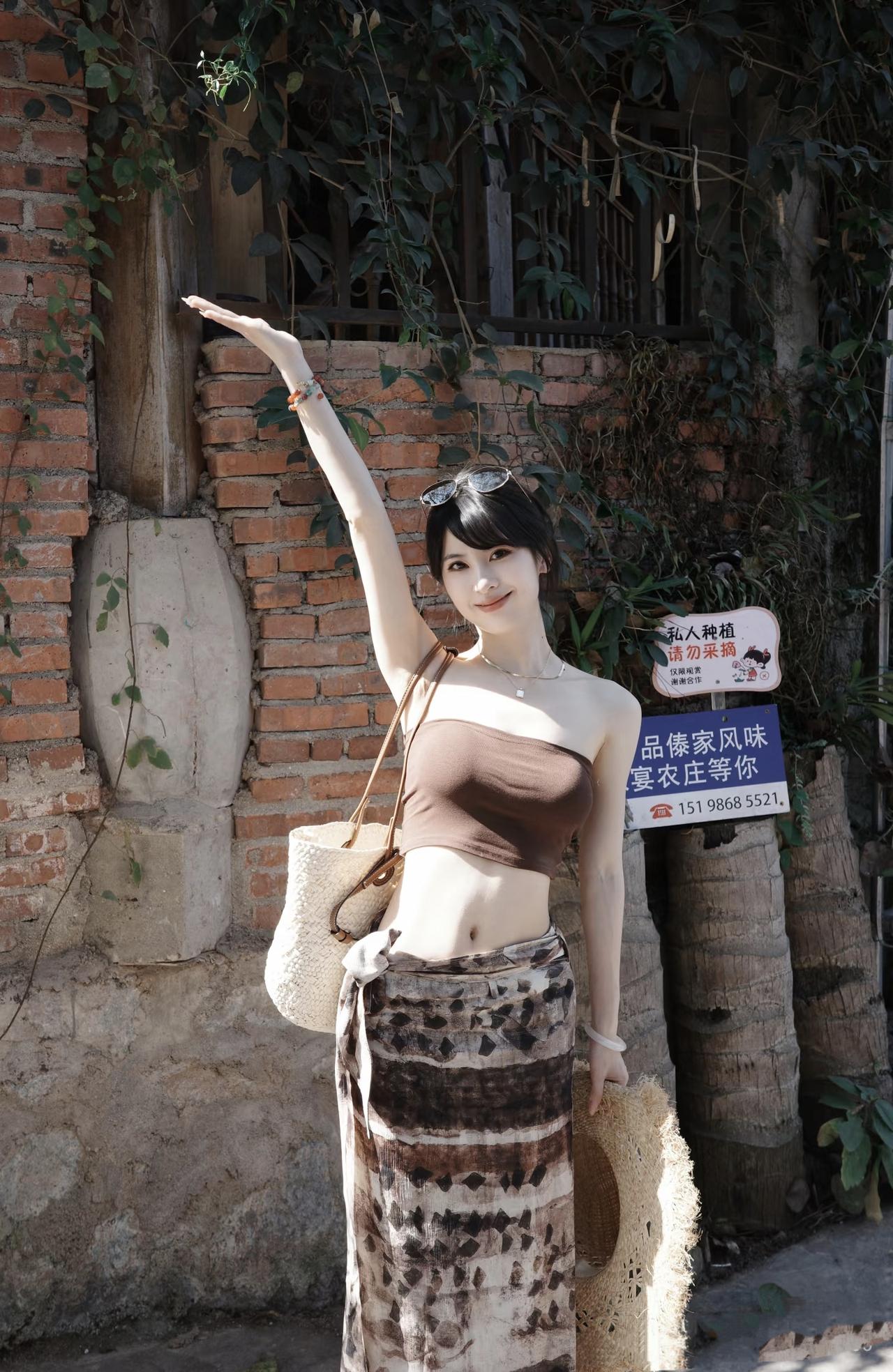 美图欣赏,看图写诗,情感解读 《清夏曼堂》 七言绝句: 棕衣轻裹玉肌凉, 草笠藤包趁晓光。 曼堂风软吹人醉, 一晌闲情付浅香。 现代诗意: 老砖墙的剪影, 成了你的背景。 草编包藏着一夏蝉鸣, 草帽兜住整片夏天的云。 曼堂的风很轻, 轻到能听见心跳, 和那句“很想你”的回音。 清丽短句: 檐下青藤,檐上蝉声。 你坐成一帧,曼堂的画。 情感解读: 这组曼堂的照片,像一首流动的夏日诗。棕衣裹着松弛,草编包盛着烟火,老砖墙爬着时光的温柔。风掠过发梢,也掠过“我在曼堂很想你”的细碎心事,让每一次回眸,都成了与生活温柔共振的瞬间。 治愈系夏日的清凉诗 图片来源于网络,侵删