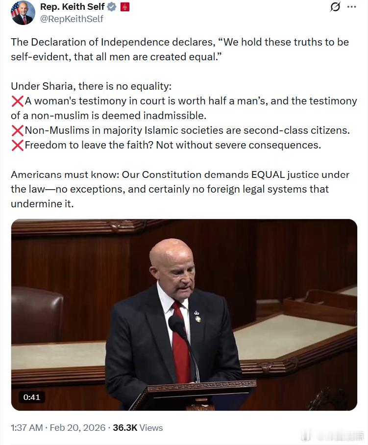美国人必须清楚:我们的宪法要求在法律面前人人平等——没有例外,更不能允许任何外国法律体系破坏这一原则。