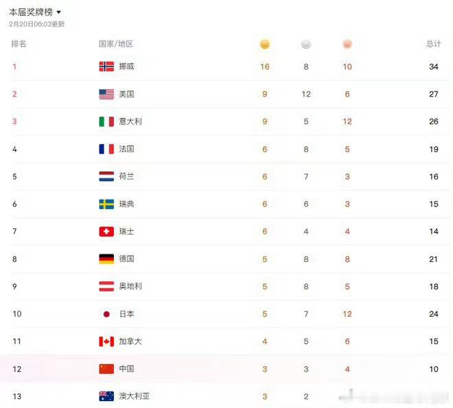 宁忠岩夺金后,中国队已经在米兰冬奥收获3金3银4铜,在奖牌榜上升至第12名!