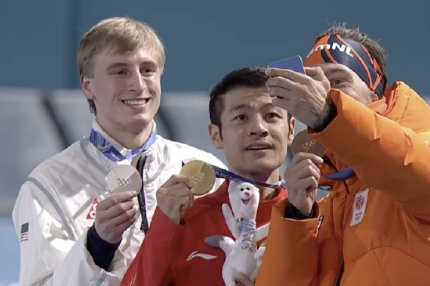 宁忠岩戴上奥运金牌!激动得泪流满面🏅 听解说介绍,这位美国的紫微星几乎统治了这个项目,好像他领奖排队的时候都习惯性站在中间了,[泪奔] 但宁忠岩就是在最关键的舞台奇迹般杀出,逆天改命夺下这枚宝贵的金牌。 另外宁忠岩的外型条件真的不错,有点迪米那味儿[doge] 看来后面商业价值会大爆!
