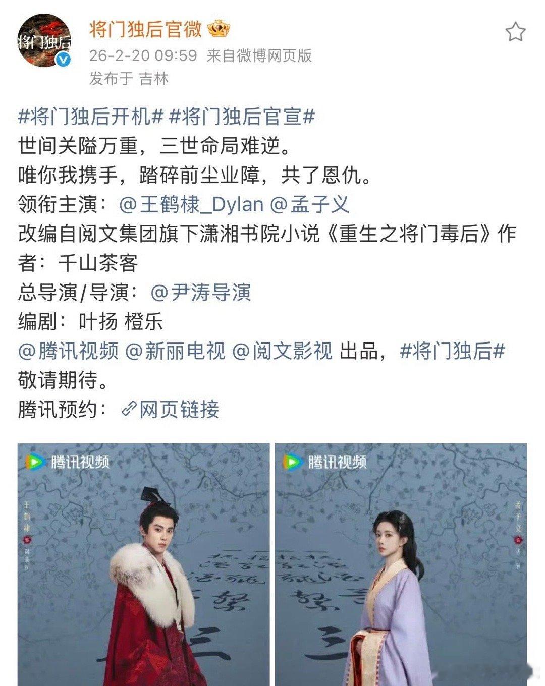 将门独后官宣了,王鹤棣一番,孟子义二番 这个番位符合你们预期的人气吗?