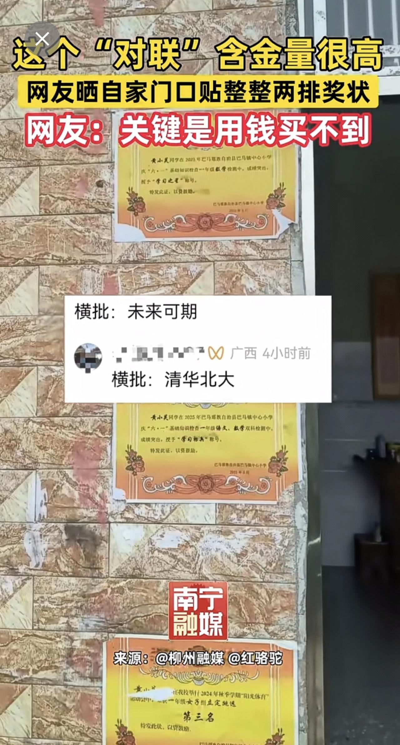 广西网友晒独特“奖状对联”,家门口两排奖状超有含金量,网友:用钱都买不到 (剪辑