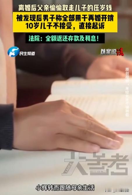 河南郑州,10岁男孩小辉父母离婚后,他先跟父亲生活,后因父亲再婚且不善待他,便回到母亲身边。可小辉发现,自己攒的8万元压岁钱不见了,询问得知被父亲取走花到再婚家庭。小辉质问父亲,父亲却称儿子钱就是自己的。小辉苦苦哀求无果,在母亲支持下告到法院,要求父亲归还压岁钱及利息。 10岁男孩小辉,父母离婚后,他先跟了父亲生活。谁能想到,这父亲很快再婚,小辉在新家庭里过得那叫一个憋屈! 继母对他爱搭不理,父亲也跟变了个人似的,根本不把他当亲儿子。小辉每天小心翼翼,生怕做错什么,可即便这样,还是处处遭白眼,心里别提多委屈了。 小辉思来想去,决定回到母亲身边。母亲看到儿子回来,又心疼又欣慰,母子俩开始整理小辉的东西。这一整理可不得了,小辉发现,自己多年来辛辛苦苦攒下的8万块压岁钱不见了! 这钱是小辉从懂事起,每年过年爷爷奶奶、姥姥姥爷,还有亲朋好友给的。别的小朋友拿到压岁钱,立马就去买零食、玩具,可小辉不一样,他特别节俭,每次都把钱好好收起来,想着以后有大用处。 小辉赶紧问母亲,母亲也一头雾水,两人一番打听,这才知道,原来是小辉父亲再婚时,把这笔钱取走花到再婚家庭了。 小辉自己攒的钱,父亲居然一声不吭就拿走给别人花!他立刻找到父亲质问:爸,你为啥拿我的压岁钱?那是我攒了好久的! 父亲却满不在乎,大言不惭地说:你是我儿子,你的钱就是我的钱!我结婚用点钱怎么了? 小辉听了,委屈地说:爸,我攒这钱多不容易,别的小朋友买这买那,我都忍着不买,就想着以后能有点底气。你怎么能这样呢? 可父亲根本不听,还嫌小辉不懂事。小辉苦苦哀求父亲把钱还给他,父亲却坚决拒绝,一分钱都不愿还。 小辉回到母亲身边,把事情一五一十地告诉了母亲。母亲又气又心疼,安慰小辉说:儿子,别怕,咱告他去! 在母亲的支持下,小辉一纸诉状把父亲告上了法院,要求父亲归还他的8万块压岁钱,还要支付利息。 从法律上讲,压岁钱可不是这么回事。 《民法典》第657条明确规定,赠与合同是赠与人把自己的财产无偿给予受赠人,受赠人表示接受赠与的合同。 小辉每年收到的压岁钱,是长辈们对他的无偿赠与。这钱一旦到了小辉手里,所有权就完全归他了,跟他父亲和别人之间的“礼尚往来”没有任何关系。 也就是说,就算小辉父亲给别人家孩子也发了红包,那是他单独的人情支出,不能拿小辉的压岁钱来抵消。 这就好比你借给别人钱,别人还钱的时候,你不能说“我之前也借过你钱,这钱就不用还了”,这肯定不行啊! 据《民法典》第35条也规定,监护人应当按照最有利于被监护人的原则履行监护职责。监护人除为维护被监护人利益外,不得处分被监护人的财产。 小辉的父亲作为监护人,只能为了小辉的利益才能动用他的财产,比如给小辉交学费、看病啥的。可他把钱拿去给再婚家庭用,这跟小辉的利益一点儿关系都没有,明显就是违法处分被监护人的财产。 之前也有不少类似的判例,法院都明确表示,父母离婚时不能分割孩子的压岁钱,要是挪用了,必须全额返还。最高院还有典型案例,这种情况不仅要返还本金,还得赔付相应的利息。 小辉已经10岁了,属于限制民事行为能力人,他对自己的压岁钱有一定的自主决定权。他父亲擅自把钱取走,根本没有尊重小辉的意愿。 所以,他父亲那句“你的钱就是我的钱”,在法律上根本站不住脚,小辉的8万块就是他的个人财产,他父亲必须全部返还。 法院经过审理,最终判决小辉父亲返还小辉的压岁钱和利息。 父母离婚,对孩子来说已经是个不小的打击了,作为父亲,不仅没有好好照顾孩子,给孩子更多的爱和关怀,反而做出这种事,真的太让人心寒了。 小辉攒这8万块压岁钱多不容易,那可是他一点点省下来的,是他对未来的一份期待和希望。父亲怎么能这么轻易地就把它拿走呢? 做父母的,既然把孩子带到这个世界上,就要对孩子负责,要尊重孩子的权益和感受。不能因为自己的私欲,就随意侵犯孩子的利益。 这8万块压岁钱,对小辉来说,不仅仅是一笔钱,更是他成长过程中的一份珍贵回忆,是他努力和坚持的见证。 你们觉得这父亲做得过分吗?欢迎在评论区留言讨论,说说你们的看法!