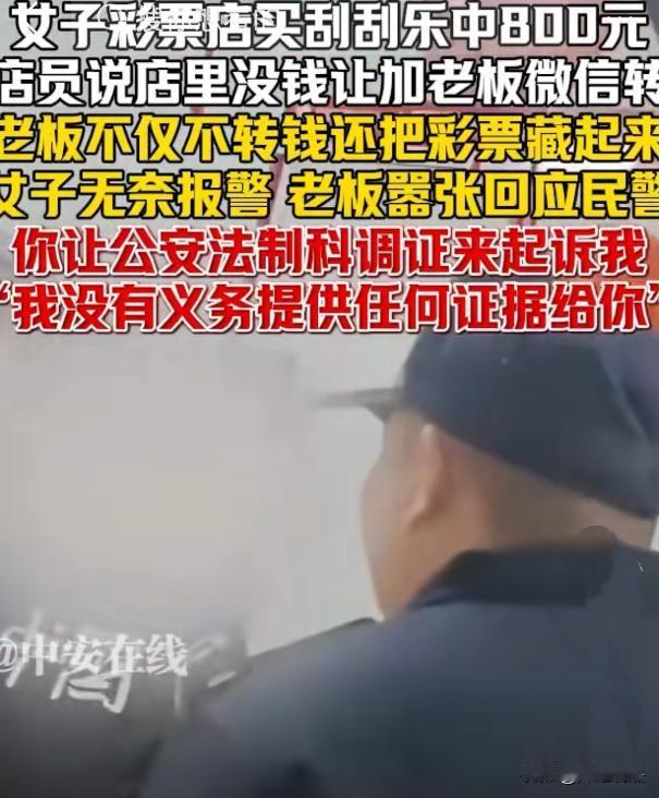 山西,一女子在彩票店先买了10注双色球,付完钱后又买了张刮刮乐,一刮竟中了800元。她让店员兑奖,店员称没现金,老板说微信转。女子加微信后却没收到转账,再回店里,老板竟把彩票藏起来,还否认她中奖。女子报警,老板面对民警还嚣张叫嚣,让民警找法制科调证起诉他,没义务提供证据。周围群众都看不下去了。 4月的一天,女子闲来无事,去家附近的彩票店碰运气。她先跟往常一样,机选了10注双色球,扫码付了20元,动作那叫一个熟练。 买完双色球,她瞅见柜台上的刮刮乐,手痒痒就抽了一张。刮开涂层那瞬间,她眼睛都直了——800块!这运气,简直像天上掉馅饼砸脑门上。她赶紧把刮刮乐的20块也付了,举着彩票喊:“兑奖!” 店员接过彩票,皱着眉头说:“店里没现金,等老板转你微信吧。”王女士心里咯噔一下,但想着老板总不能赖账,就加了老板微信。结果左等右等,手机安静得像块砖,钱影子都没见着。 她急匆匆赶回店里,老板一改之前的客气劲儿,叉着腰嚷嚷:“你根本没付刮刮乐的钱!这奖不算!”说完还把彩票塞进抽屉,死活不肯拿出来。王女士又气又懵:“我明明扫码付了!你翻记录啊!”老板翻了个白眼:“谁知道你是不是P的图?” 王女士当场掏出手机,翻出付款记录怼到老板脸上。老板瞥了一眼,冷笑:“这能说明啥?说不定你之前欠我钱呢!”王女士气得直哆嗦,掏出手机报了警。 民警到场后,老板更嚣张了,扯着嗓子喊:“你们有本事找法制科调证起诉我啊!我没义务提供证据!”周围看热闹的群众都炸了锅:“这老板太缺德了!”“800块至于吗?”有个大爷直摇头:“我买了十年彩票,头回见这么耍赖的!” 其实这老板的行为,搁法律上叫“侵占罪”和“欺诈”。咱一条条掰扯清楚—— 《刑法》第270条明明白白写着:把代为保管的他人财物非法占为己有,数额较大还拒不归还的,处二年以下有期徒刑。 这案子里,彩票中奖后,奖金所有权就归王女士了。老板作为彩票店经营者,有义务帮顾客兑奖,相当于“代为保管”这笔钱。 可他不仅不转账,还藏起彩票否认中奖,这不就是“非法占为己有”吗?800块虽然不算“数额巨大”,但按山西的标准,也够得上“数额较大”了,完全能立案。 《治安管理处罚法》第49条说了:诈骗公私财物的,处五日以上十日以下拘留,可以并处五百元以下罚款。 老板明明收到付款记录,却编造“没付钱”“欠债”等理由,想赖掉奖金,这不是诈骗是啥?民警完全能以“诈骗”为由,对他进行行政处罚。 最气人的是他那句“没义务提供证据”。 根据《民事诉讼法》第64条,谁主张谁举证——老板要是咬死“王女士没付钱”,得他自己拿出证据,比如监控显示她没扫码,或者付款记录是伪造的。可他啥证据没有,光靠一张嘴胡搅蛮缠,这在法律上叫“举证不能”,法院根本不会采信他的鬼话。 说实话,这老板的行为,真挺让人寒心的。800块说多不多,说少不少,但为了这点钱丢掉诚信,甚至公然抗法,值得吗? 更离谱的是,他可能还觉得自己“聪明”——反正王女士没留证据,民警也拿他没办法。可他忘了,现在到处是监控,付款记录能查,周围群众也能作证,真要较真,他绝对跑不了。 其实王女士要是较真,完全可以走法律途径:先向彩票中心投诉,要求核查中奖记录;再拿着付款记录、报警回执去法院起诉,要求老板返还800块,还得赔她误工费、交通费啥的。虽然麻烦点,但能让这老板付出代价,也算出口气。 不过话说回来,现实中遇到这种商家,很多人可能嫌麻烦就自认倒霉了。但我觉得,越是这样,越不能惯着他们——今天他能赖800,明天就能赖8000,后天说不定连你的钱包都敢抢!所以遇到这种事,该报警报警,该起诉起诉,别怕麻烦,你的每一次较真,都是在维护社会的公平正义。 要是你遇到这种耍赖的商家,会选择忍气吞声,还是硬刚到底?你觉得800块值得打官司吗?欢迎在评论区聊聊你的看法!
