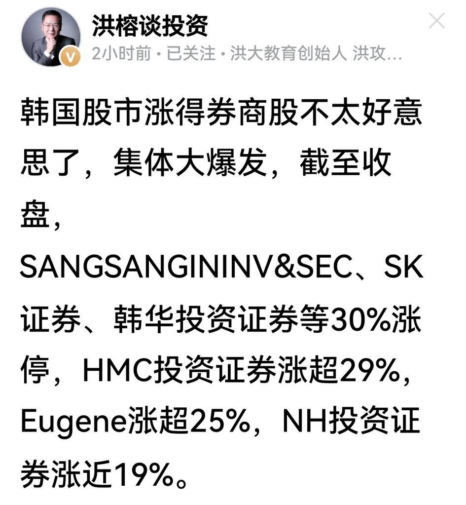 今天大年初四、周五,全球资本市场年关并无大雷,大A投资者正静候越来越近的开盘脚步。 美欧股指全面收绿,但韩国股市在昨日创历史新高后,今天继续我行我素,尤其是券商股多日来持续大涨,今天SK证券、韩华证券30%涨停,貌似无惧风险、更无厘头,让持有券商股的大A股民好生羡慕[捂脸]。 外围市场树立了榜样,重要会议又即将开启利好模式,大家有理由期待春季行情延续,悬念是涨科技股还是券商股。