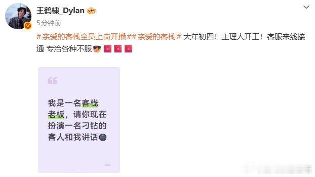 王鹤棣大年初四开工王鹤棣客栈主理人开工!终于盼来开播,今晚一起来看《亲爱的客栈》亲爱的客栈