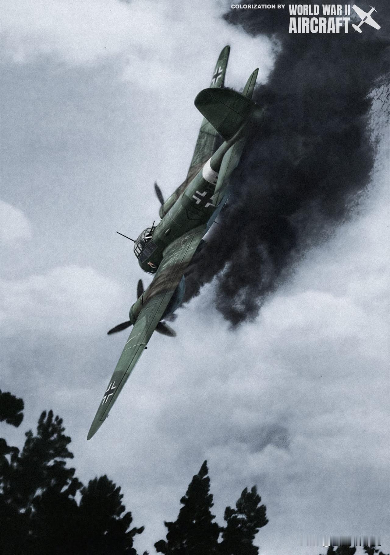 一架He 111轰炸机被击中,正在坠向地面。 历史 历史老照片 二战 德国