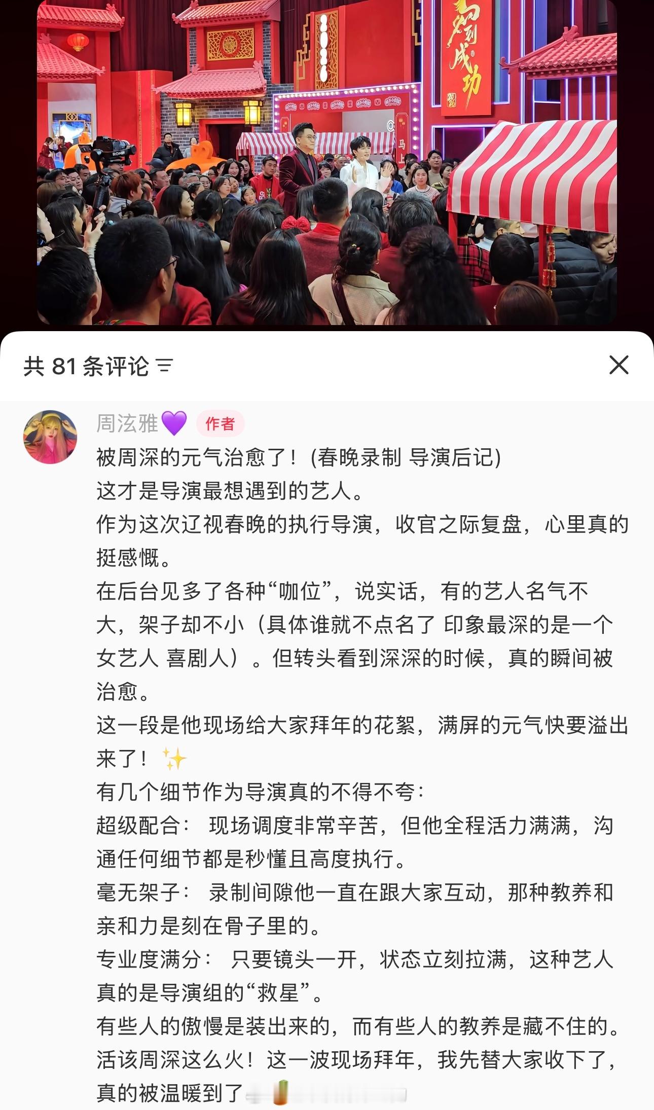 辽视春晚执行导演评的周深导演最想遇到的艺人就是周深这样的