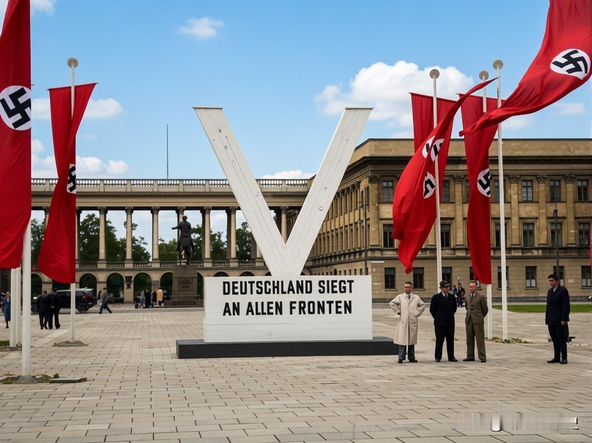 德意志必须遥遥领先!“V”形标志下的标语写着“德国在所有领域领先”。 历史 历史老照片 二战