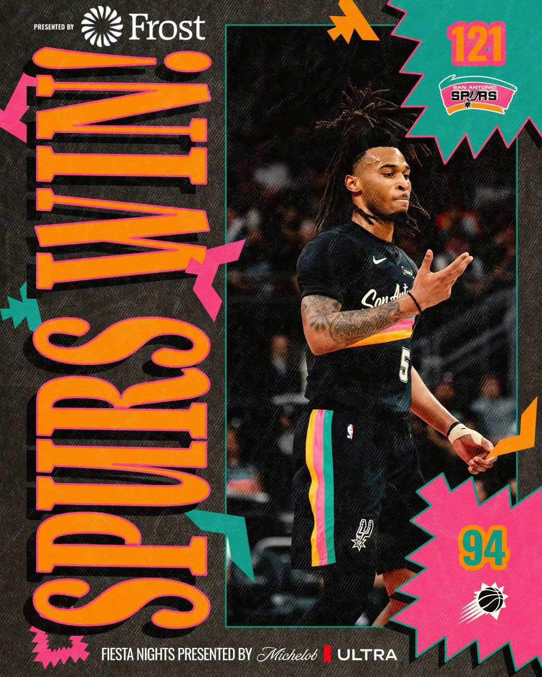 全场比赛结束!马刺主场121-94轻取太阳,喜提7连胜🎉