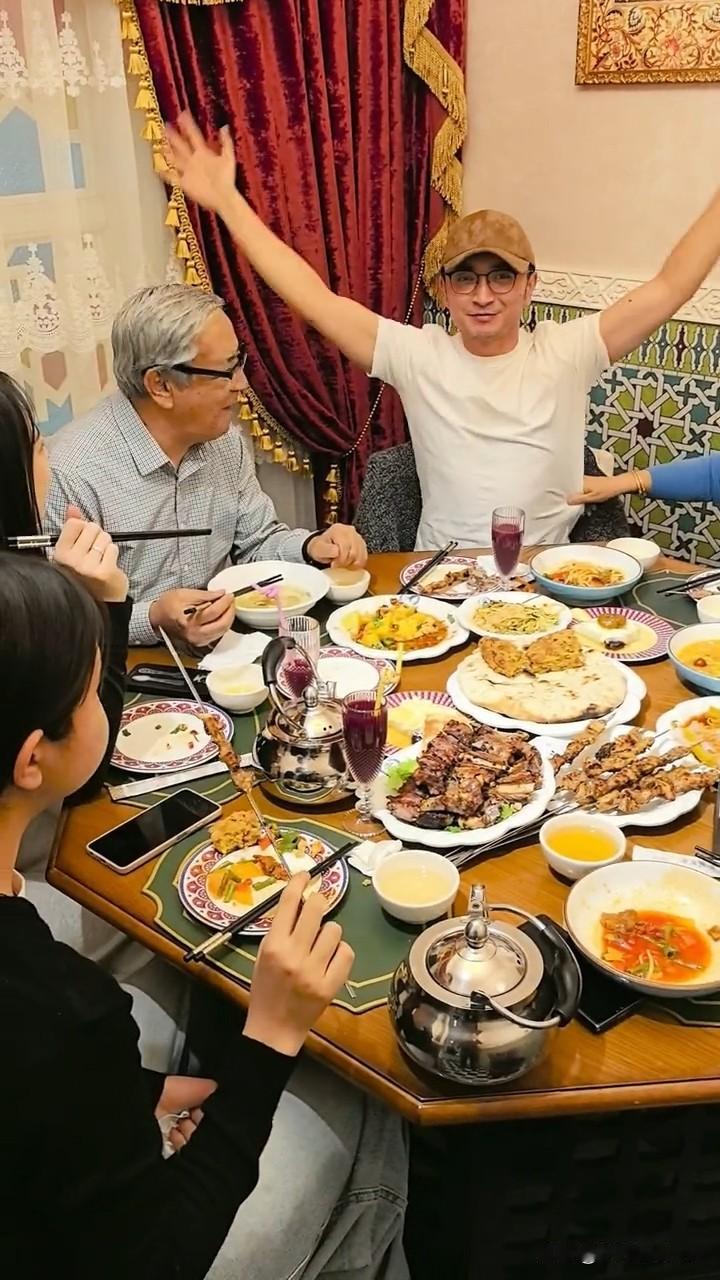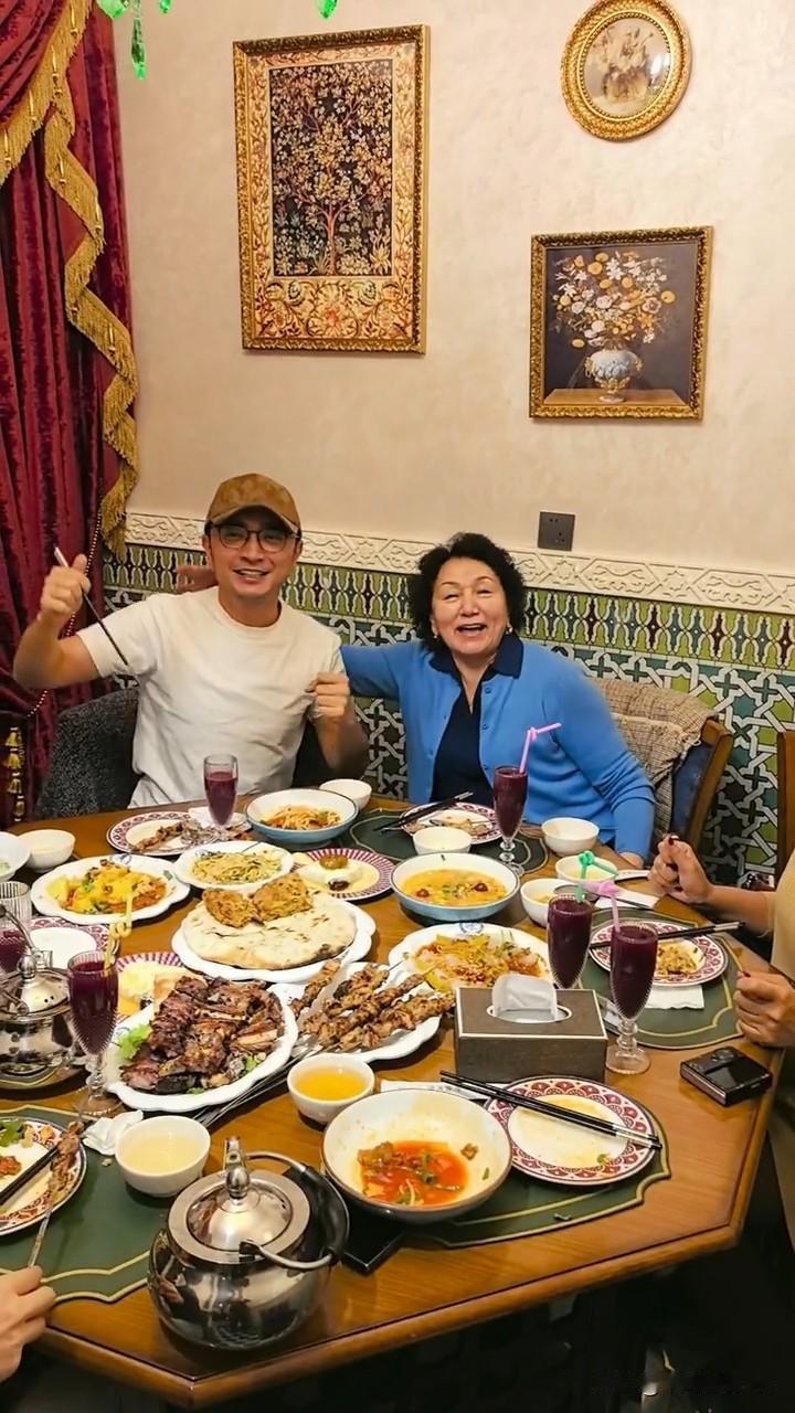 2月20日,央视主持人尼格买提更新美食vlog,并配文“给我猛猛吃”。 尼格买提回到新疆后,家人为他准备了满满一大桌家乡美食,好吃得让他根本停不下来。 小尼哥身穿白色T恤,头戴鸭舌帽,他坐在爸爸妈妈中间,多么幸福的一家人。 尼格买提都吃了哪些美食呢?我们一起来看一看吧。 桌子上有拉条子、黄面、和田粽子、面肺子、凉粉、无花果粽子、玉米面肉馕、羊腱子、羊肉串、玉米面饭以及石榴汁,一眼望过去全是肉和面食,没有看到一盘素菜。 尼格买提平时都在北京工作,但他一有时间就会回新疆看望爸爸妈妈,真是个有孝心的好孩子呀。