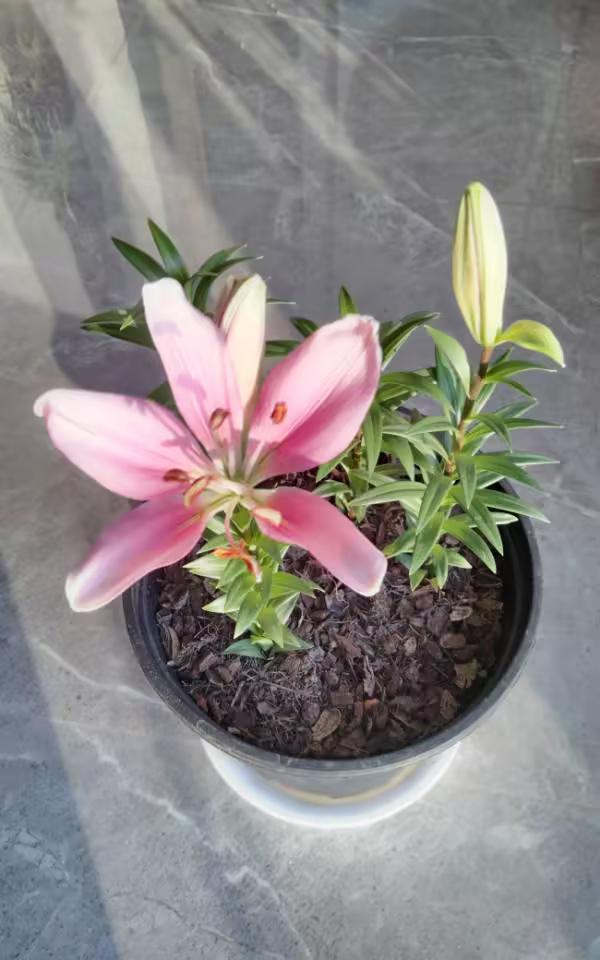 我的百合花开放了 春节期间开放了 娇艳欲滴的百合花,散发着淡淡的清香,在春节期间开放了。 盛开的百合,其美不言而喻,如同细腻的绸缎,在阳光照袄下,熠熠生辉。 友友的们家里什么花盛开了,交流一下吧!