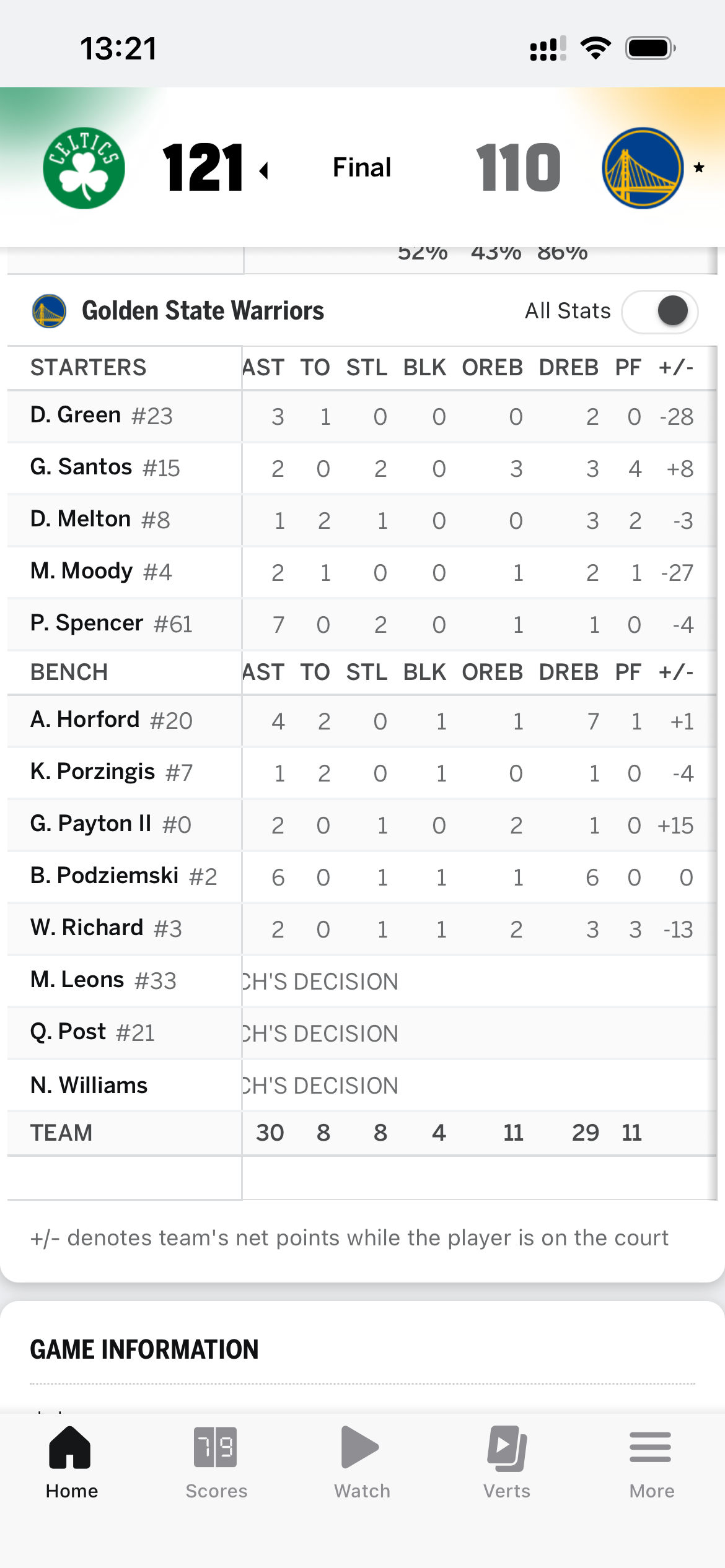 勇士首发:斯班瑟,穆迪,梅尔顿,桑托斯和追梦霍福德和铂金替补出战