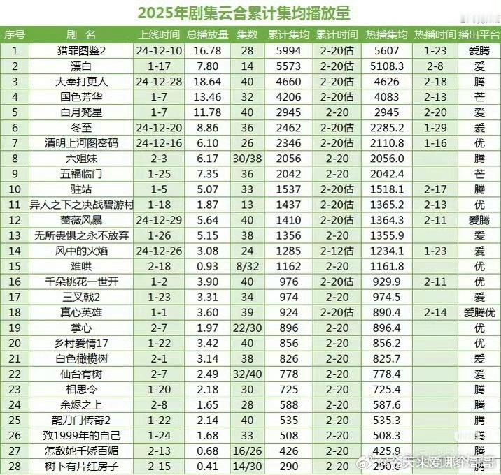 今年年初和去年年初剧集播放量对比,怎么会差这么多,一年而已