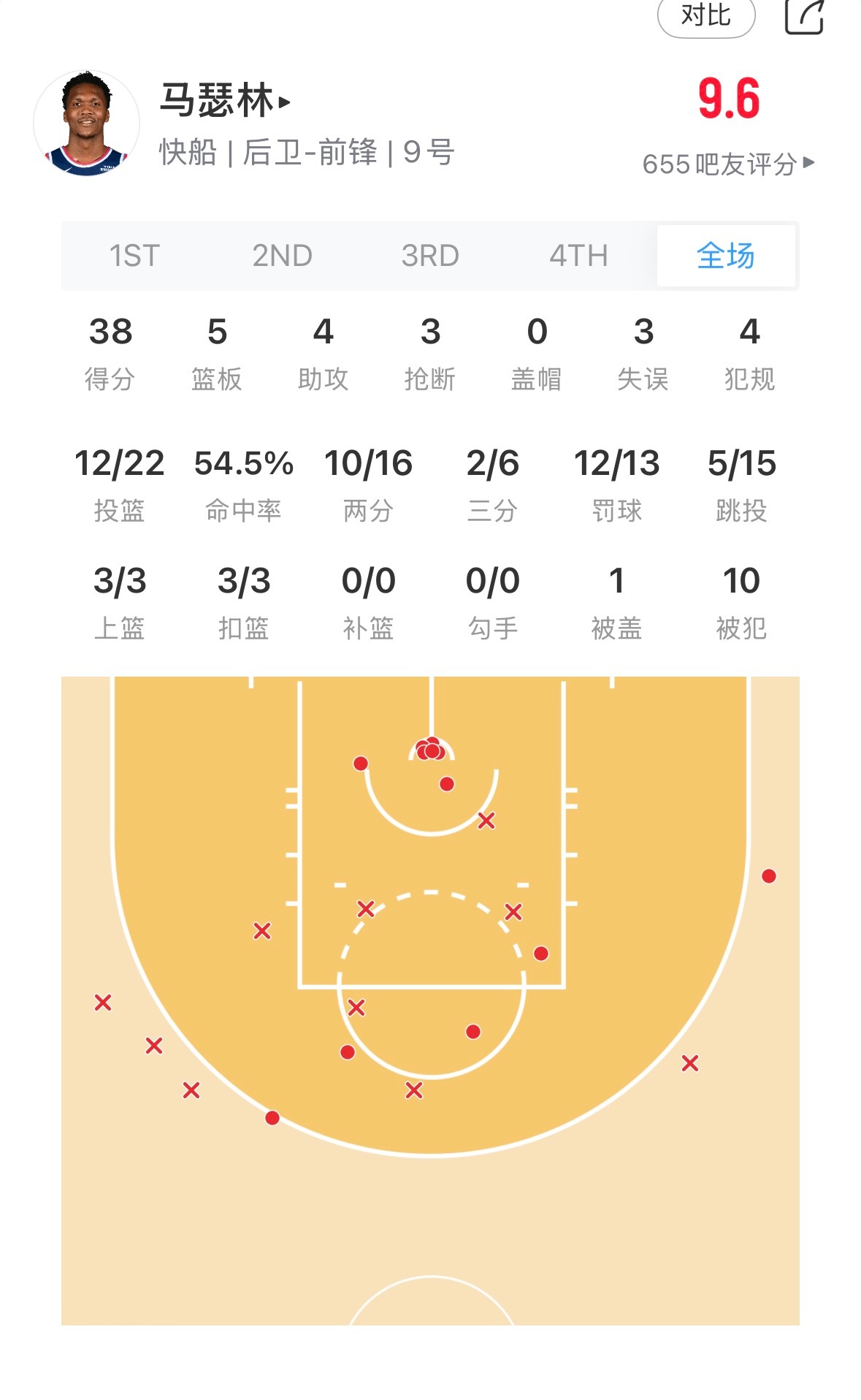 马瑟林今日主场首秀38分