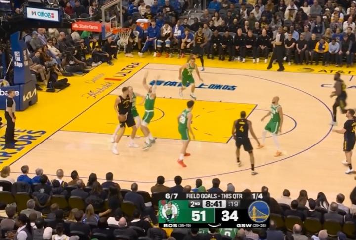 波尔津吉斯人都傻了! 刚来勇士第一场比赛,一上场就被双人包夹,且对面是最熟悉他的凯尔特人,而凯尔特人双人包夹后选择防空的对象,就是全场7投0中的追梦格林! 这一把,波尔津吉斯感受了一下平时库里的待遇,他好在身高足够,举起来可以直接投篮,库里要是面对包夹不出球,就没有投篮空间了,这都是追梦格林带来的附加产品...