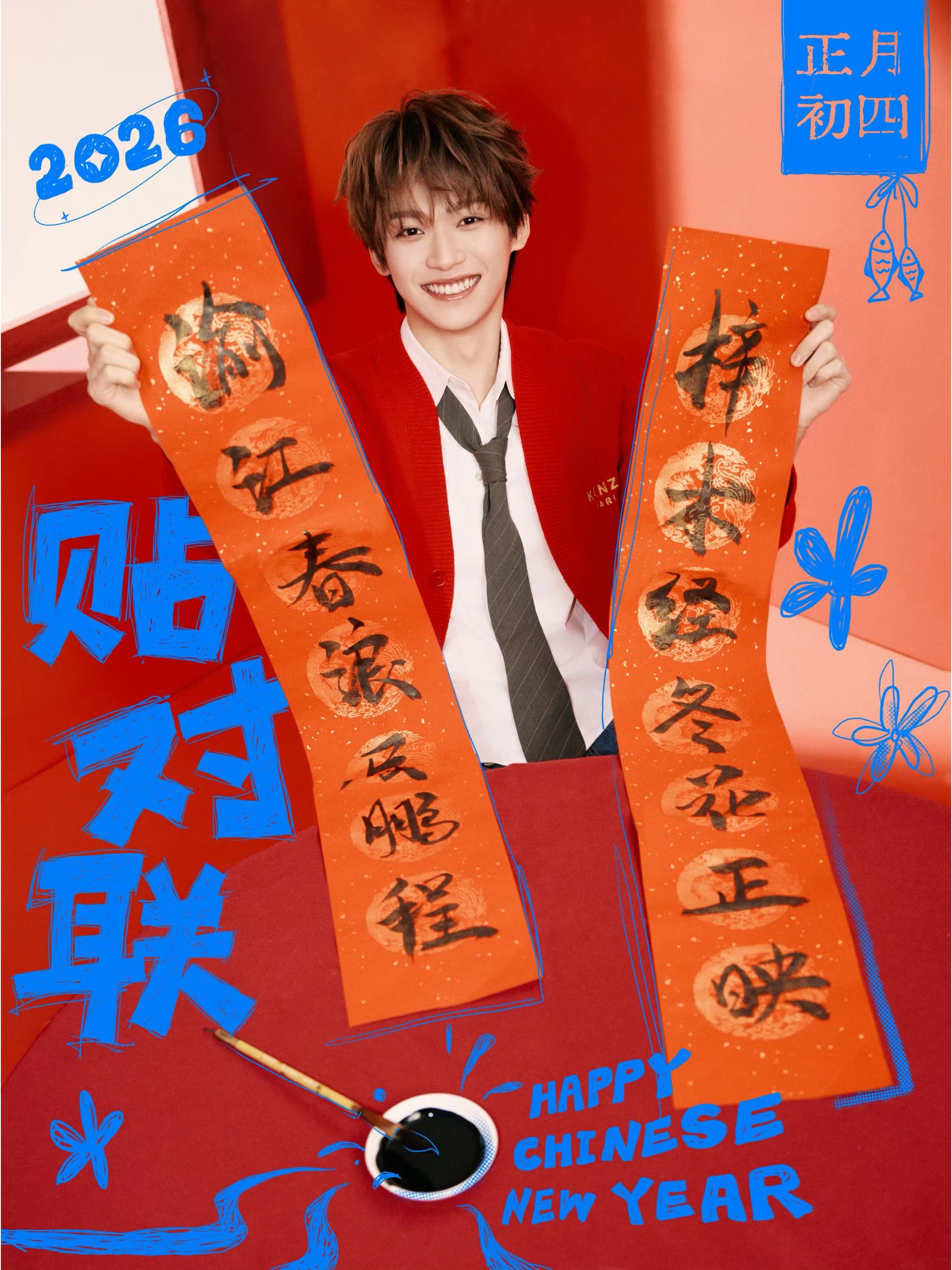 梓渝藏头春联 梓渝正月初四,春联添年味藏头春联:梓渝 、“正鹏”郑朋“梓木经冬花正映,渝江春浪展鹏程”
