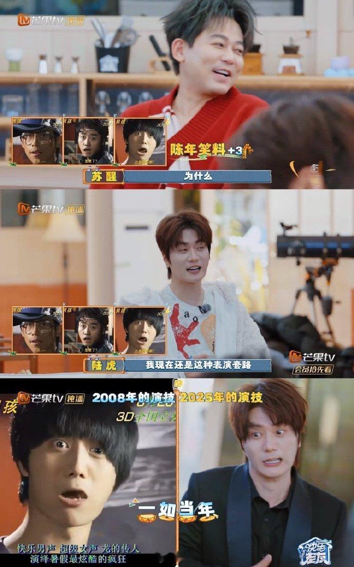 陆虎 陈年笑料就是用来反复鞭尸的 古早影像里的蘑菇头小子一出现,0713全员都被逗笑了~当年的演技和现在对比一下,不能说毫无关系,只能说一模一样哈哈哈哈哈哈。这种“从一而终”的表演风格,不愧是综艺嫡长子~快乐老友记快乐老友有风季