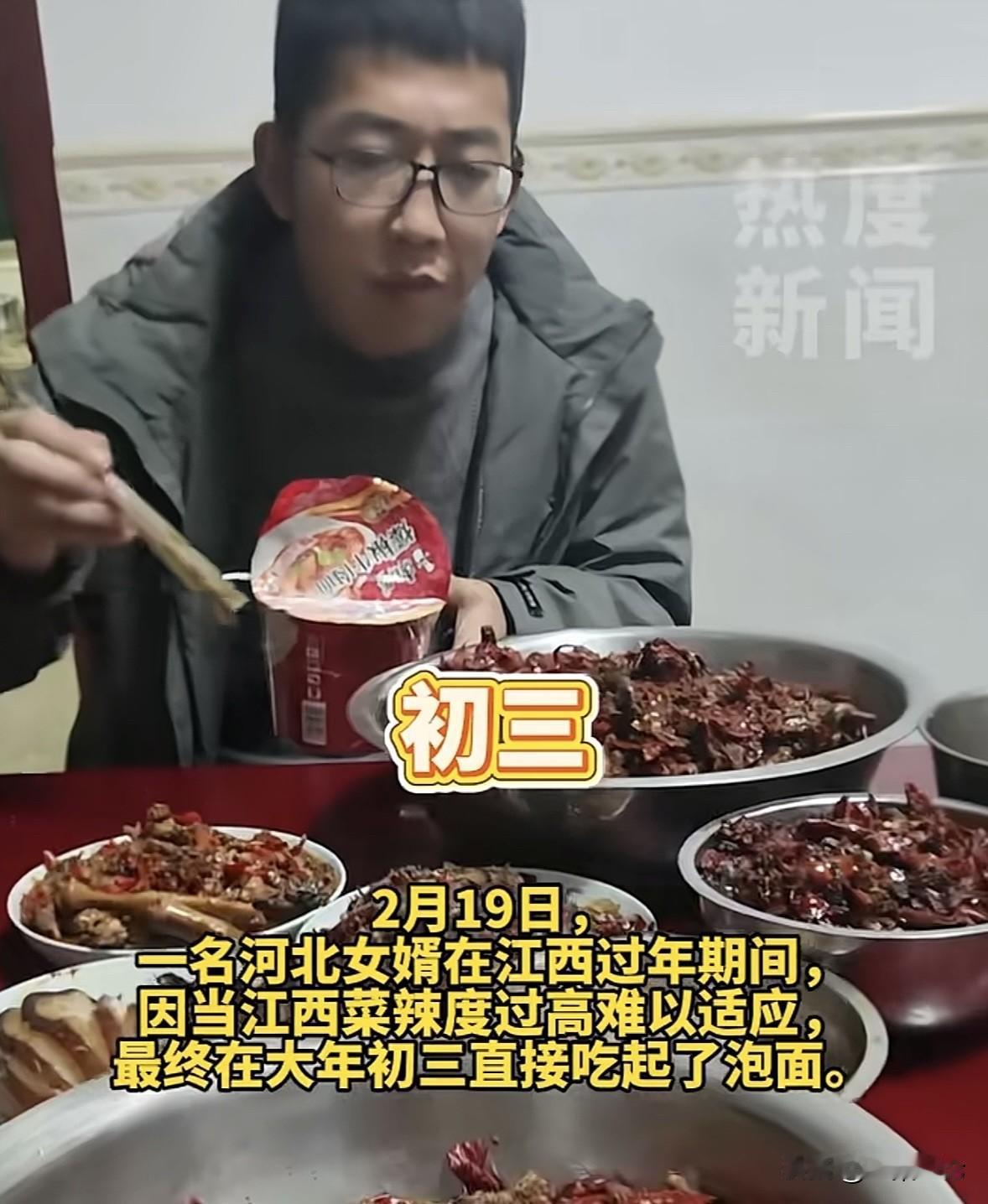 “笑不活了!”一河北小伙跟着媳妇回江西过年,他不咋能吃辣,可丈母娘却做了一桌红彤彤的辣菜,什么辣椒炒肉、剁椒鱼头…甚至纯辣椒都能当一道菜。媳妇告诉他,这就是江西特色,无辣不欢!男子一尝,那辣味直冲他天灵盖,辣得他从头到尾水杯就没放下过,最后因为实在吃不了,只能给自己泡了桶面。网友:这丈母娘不讲究! 2月18号,网上一段视频把大家伙儿都逗乐了,笑着笑着又觉得这哥们儿实在太真实、太可怜。 故事的主角是个河北女婿,跟着媳妇回江西老家过年。 这趟门出的,本来是高高兴兴走亲戚,结果他坐在媳妇家的饭桌前,那真是傻了眼了。 在他家过年吃年夜饭,桌上讲究个荤素搭配,红红绿绿看着喜庆。 可江西老表家的桌子,那是真“红火”。一眼望去,全是红的! 辣椒炒肉、剁椒鱼头、小炒黄牛肉,这都算常规操作。 最让男子发怵的,是那盘纯炒辣椒,连个配菜都没有。甚至连那盘看着像青菜的东西,里头都埋着一截截的干辣椒。 男子手里攥着筷子,悬在半空中,愣是不知道往哪儿戳。 出发前,媳妇其实给他打过预防针,说江西菜辣。 男子也没当回事,觉得我们河北人也不是不能吃辣,炒个菜放俩辣椒提提味,那能叫事儿?结果现实给了他一记响亮的耳光。 这时候,丈母娘那是真热情,看着女婿不动筷子,赶紧夹了一大块肉放他碗里,还特诚恳地说:吃这个,这个不辣,就放了一点点辣椒,意思一下。 女婿一听不辣,心里防线稍微松了点,硬着头皮把肉塞嘴里。好家伙!这一口下去,都没怎么嚼,一股火直接从舌尖窜到了天灵盖。 那一瞬间,他感觉自己的嘴巴不是嘴巴,是个正在喷发的火山口。 眼泪那是生理反应,控制不住地在眼眶里打转,脸瞬间涨得通红。 但他又不能吐,毕竟是丈母娘亲手夹的,只能一边哈气,一边疯狂往嘴里灌凉水。手里的水杯就没放下来过,成了救命稻草。 后来他实在吃不进去,只能泡了桶泡面吃。 媳妇坐在旁边,看着老公那副“痛苦面具”,笑得腰都直不起来。 等他好不容易缓过劲儿来,媳妇才慢悠悠地揭秘,说在我们江西,‘不辣’的意思就是辣,‘微辣’那就是要命的辣。你刚才吃的,确实是‘不辣’的级别。 后来媳妇还补了一刀,说这顿饭其实丈母娘已经手下留情了。要是按江西本地人的家常标准,辣椒得比肉多,剁椒拌饭那是基本操作,甚至还有拿辣椒当主菜吃的。 今天这桌,纯粹是为了照顾北方女婿的脆弱肠胃,做的入门体验版! 这事儿看似是个笑话,其实特能反映咱们地域文化的差异。 对于江西人来说,没有辣椒的饭是没有灵魂的,辣椒不仅是调料,更是蔬菜,是主食的灵魂伴侣。 但对于习惯了咸鲜口或者微辣口的北方人来说,这种吃法,简直是对味觉系统的降维打击。 视频里女婿那种想吃不敢吃,吃了又受不了,不吃又饿的纠结,还有丈母娘那种我都没放辣椒你怎么还嫌辣的无辜,把这种文化碰撞演绎得淋漓尽致。 这顿饭吃完,估计这位河北女婿以后听见江西俩字,舌头都会条件反射地发麻。 但话说回来,虽然嘴巴受了罪,心里应该也是暖的。 丈母娘哪怕做了一桌子辣菜,那也是把家里最好的、最拿手的东西端出来了。这种热情和实在,虽然辣得嘴疼,却也是一种独特的年味儿。 下次再去江西,这位女婿估计得先备好两桶牛奶解辣,或者干脆自带一箱馒头,就着白开水啃了。 也有人看完觉得不妥,认为只能说丈母娘家太不讲究了,那你到底是要不要请女婿呢?为什么不照顾一下女婿?这要辣出个毛病,咋办? 《民法典》第8条规定:民事主体从事民事活动,不得违反法律,不得违背公序良俗。 虽然没有具体法条直接规定“请客吃饭”,但依据民法原理及第1165条过错责任原则,无偿的善意施惠行为,比如请客吃饭通常不产生法律上的赔偿责任,除非施惠人存在故意或重大过失。 岳母热情招待女婿,虽因地域饮食文化差异导致女婿身体不适,但这个行为属于典型的“好意施惠”。 首先,岳母主观上是出于对晚辈的关爱和亲情,没有任何恶意或加害意图,完全符合公序良俗中家庭和睦、待客热情的道德要求。 其次,女婿作为成年人,在明知江西菜辣的情况下仍前往,应对潜在风险有一定预判。 岳母的“不辣”是基于本地标准的认知偏差,而非欺骗,不存在法律意义上的“过错”或“重大过失”。 法律不应苛责这种善意的文化误解。如果因口味不合追责,将严重伤害家庭感情和社会互助的积极性。 因此,法律精神保护这种无偿的善意行为,不构成侵权。 对于这件事,你怎么看? 欢迎关注@一案一论