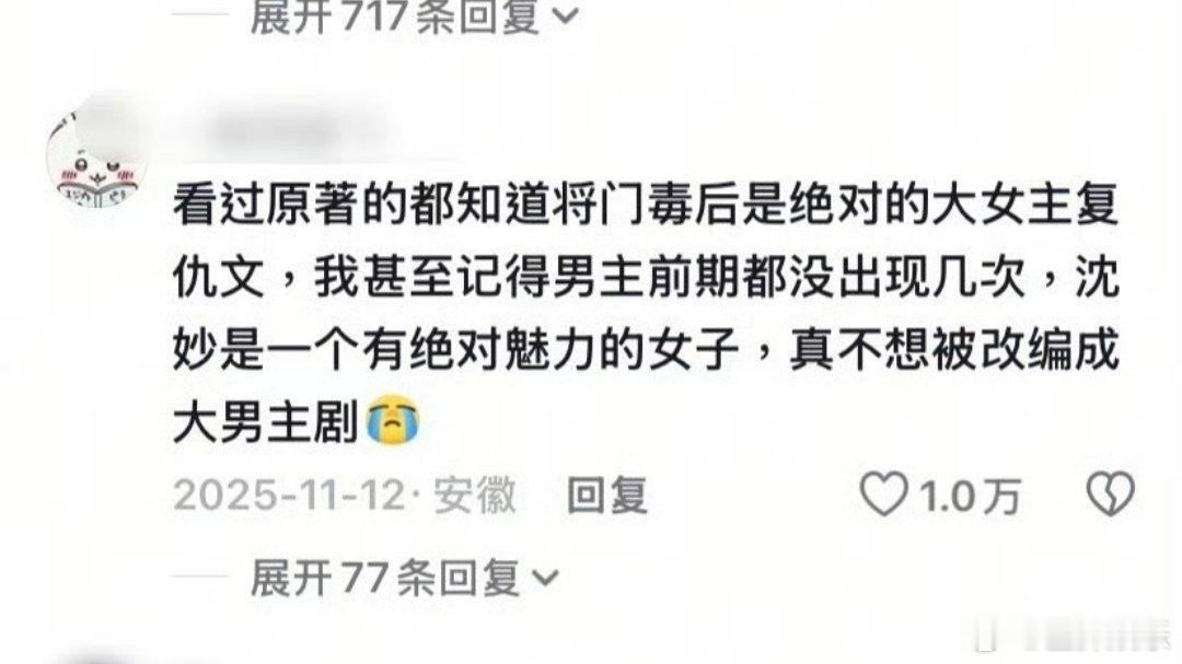 尹涛点赞孟子义一番的微博尹涛深夜点赞力挺孟子义一番,引爆《将门毒后》剧迷与书粉的集体关注。一边是资方对流量的倾斜,一边是导演对原著的认同,这场“内讧”背后,暴露的是改编剧屡见不鲜的核心矛盾——谁来为作品的精神内核负责?未播先“吵”,口碑已在路上崩塌。