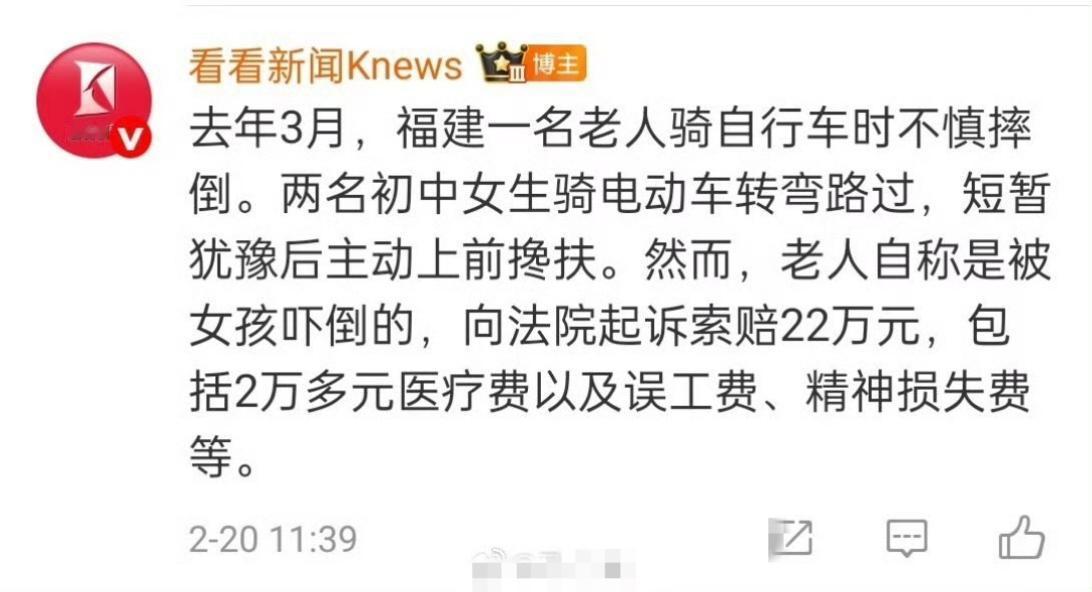 初中生扶摔倒女子遭索赔22万将开庭。媒体标题纯属误导!这根本不是扶人被讹,而是