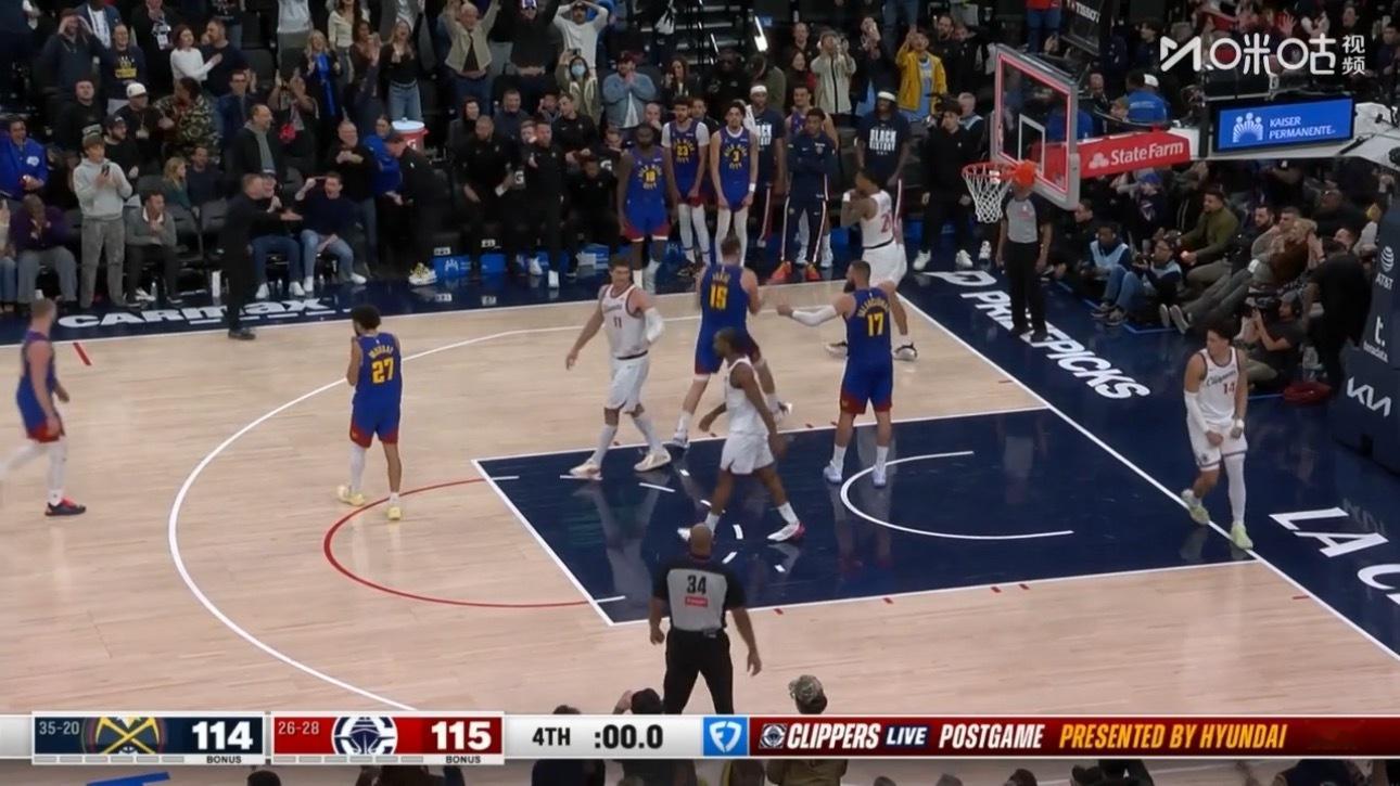 穆雷错失扳平的罚球,掘金114-115负于快船。