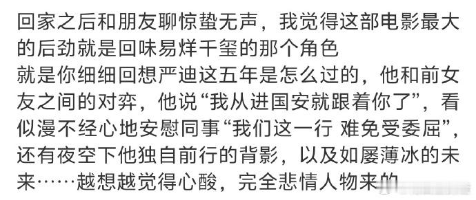 谁懂易烊千玺最后一个背影的力量 看着易烊千玺走向黑暗的背影,我破防了。那是严迪的五年,也是无数隐姓埋名者的日常,致敬这些无名英雄!