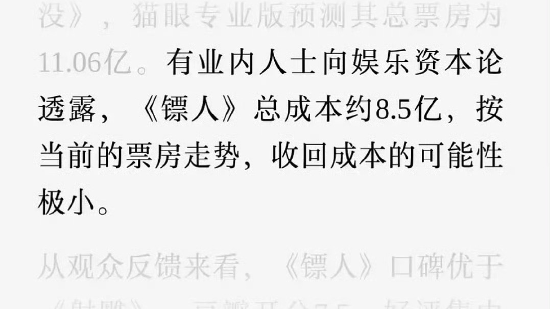 据说《镖人》总成本竟然有8.5亿,这还有机会回本吗?