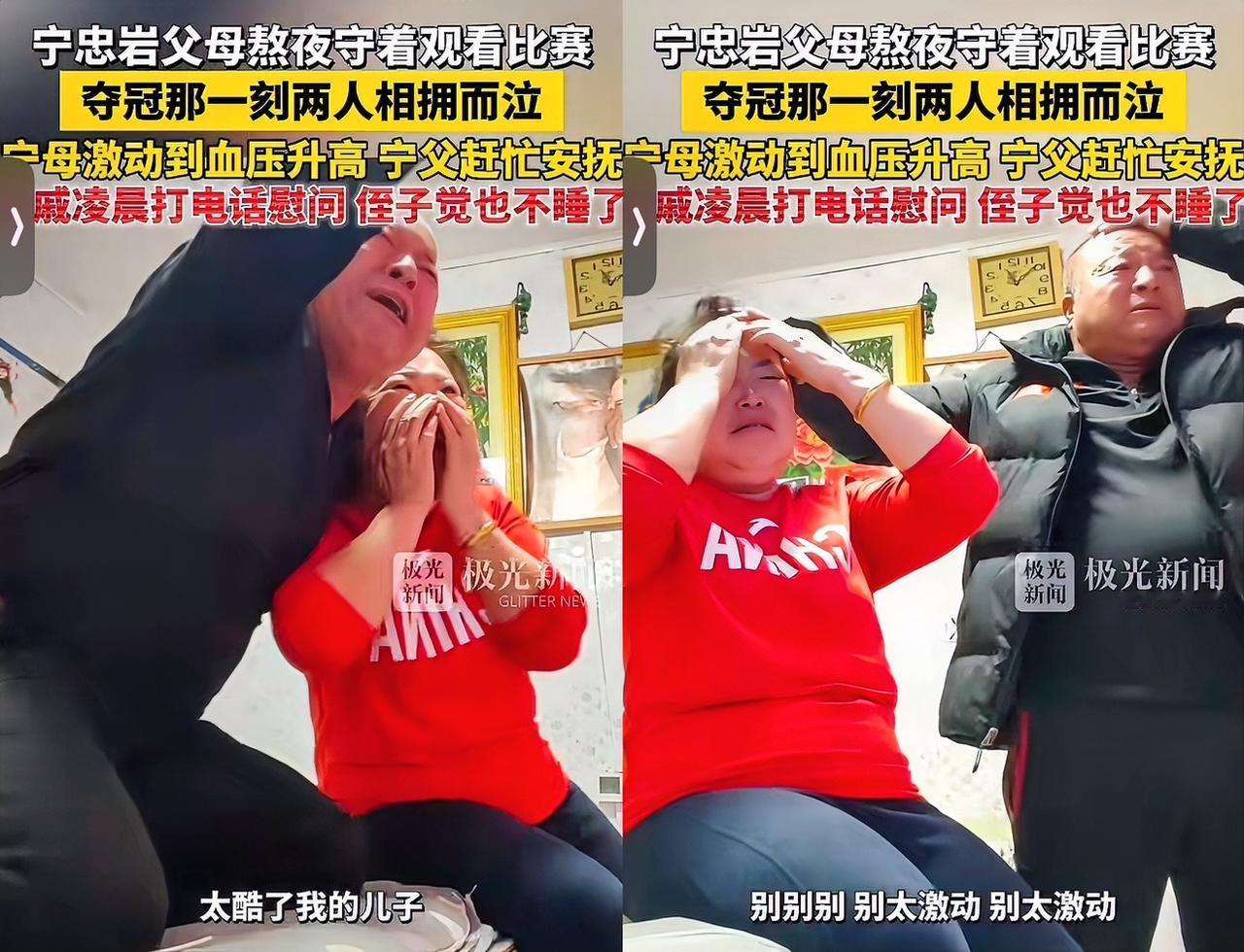 宁忠岩夺冠我没有哭 教练维特多给他擦眼泪,我也没有难过 直到看见他的父母的这个动作,我是彻底崩不住了。 宁忠岩的父母是彻夜守在电视机跟前,等着看儿子比赛的。看到儿子夺冠的那一刻,父亲激动的手舞足蹈,母亲直接激动到哭泣。 甚至在后面,由于母亲太激动了,血压瞬间升高。父亲赶紧在旁边安抚妻子。 也是这样温馨的家庭,造就了宁忠岩坚韧不拔的性格,这次的夺冠,不但让世界看到了他,也让大家看到了他和背后父母亲的默默支持! 宁忠岩,好样的!