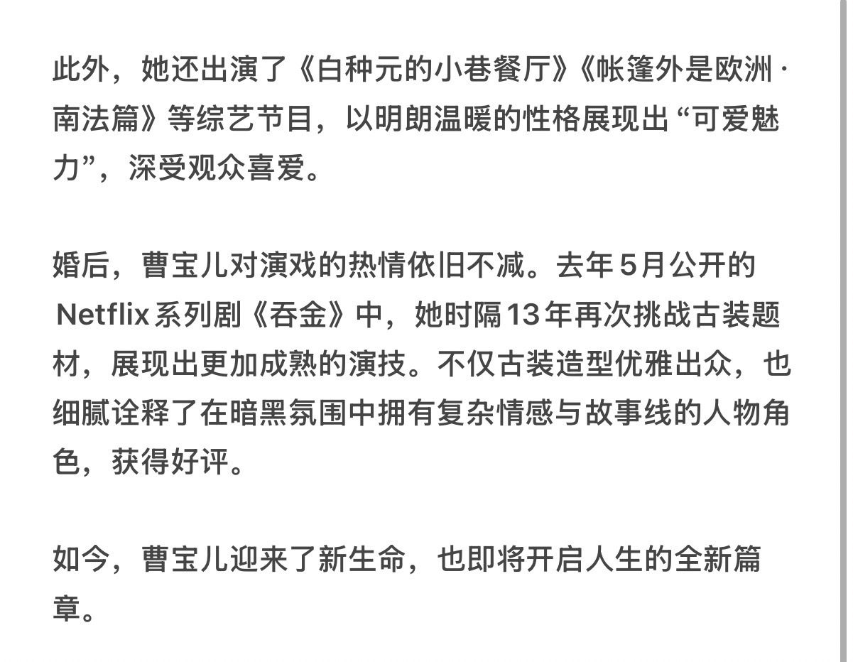 她曾出演过《吞金》《九尾狐传》《Monster》《爱情的温度》《复仇归来》等多部电视剧,于24年结婚,25年宣布怀孕