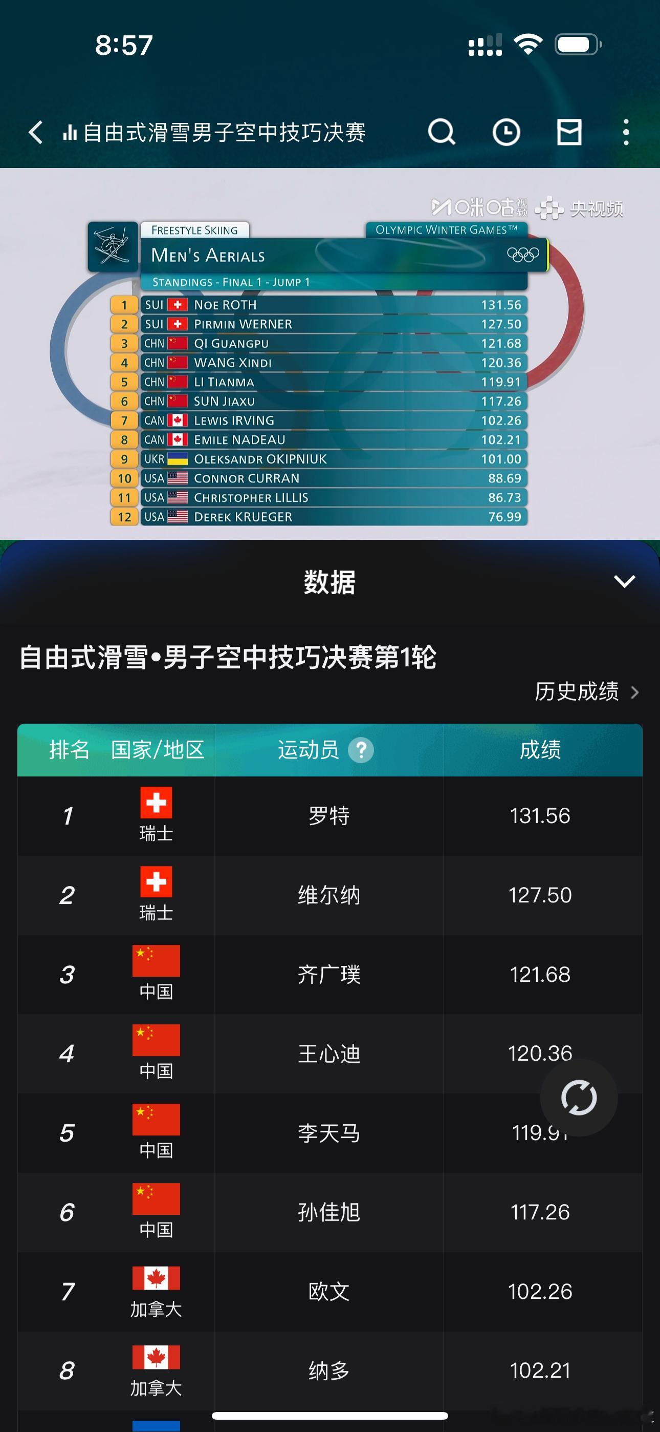 两个瑞士🇨🇭球员拿出了高难度目前暂列前两位